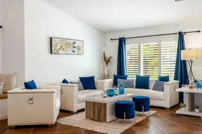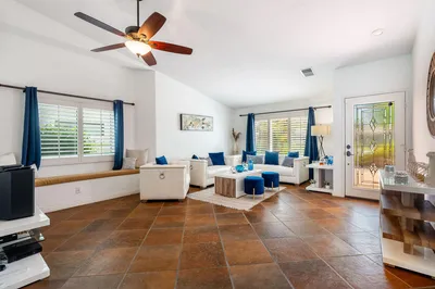 Don't miss this fantastic opportunity to lease long-term or (31 days +) residence in Lake La Quinta! Available now for yearly lease $5,500 furnished, or Seasonal $8,300. Privately located on a cul-de-sac, this charming residence offers 3 bedrooms, 2 bathrooms, and a thoughtfully designed layout perfect for extended stays. Spacious master suite with a king-size bed, walk-in closet, and dual vanities. Guest Bedroom 2: queen-size bed, and Guest Bedroom 3: queen-size bed plus a bunk bed - ideal for families or guests. Open-concept kitchen with quartz countertops, ample cabinetry, and stainless steel appliances. Washer and dryer included for your convenience. Step outside to enjoy breathtaking mountain views that frame the expansive backyard, featuring a sparkling pool and spa, a covered patio ideal for entertaining, and impeccably landscaped grounds. Non-heated pool. This premier gated community offers a recreational lake, stunning views, a manned gate, and security patrol. The Chateau restaurant is within walking distance and offers patio dining overlooking the lake. $250 cap on utilities paid by the landlord for seasonal; any amount over will be the tenant's responsibility. $350 non-refundable cleaning fee. The security deposit varies depending on lease terms. Call or text Sylvia (760) 799-5953 for a showing.