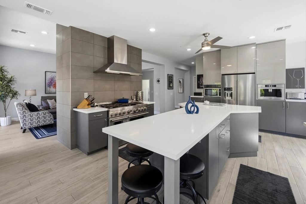 FIRST OPEN HOUSE WEEKEN: FRI 5/1 11AM - 2:00 PM. SAT 5/2 11AM-1:00 PMWelcome to an exceptional desert retreat in the highly sought-after Laguna de La Paz community. This beautifully updated home offers the perfect blend of comfort, style, and effortless living, with no remodeling needed--just move right in and start enjoying the lifestyle.Step inside to a thoughtfully redesigned interior featuring modern finishes and a light, open feel. The customized kitchen is a standout, complete with upgraded cabinetry, sleek countertops, and quality appliances--ideal for both everyday living and entertaining. The home is offered fully furnished, making it a seamless transition whether you're looking for a full-time residence, seasonal getaway, or investment opportunity.Outdoors, your private backyard retreat awaits. Take in stunning lake and mountain views from the patio--perfect for morning coffee or evening gatherings with friends and family. The serene setting and picturesque surroundings create a true sense of escape right at home.Features include: new garage door, new double front doors, filtered water system, wine refrigerator, ring doorbell, security cameras, Bosch Built-in Coffee Maker, motion lights along side patio - and so much more. This home is stunning and is a must-see.Laguna de La Paz is known for its vibrant, active lifestyle and resort-style amenities. Residents enjoy access to 15 pools, 16 spas, a scenic 5-acre lake with community boats, and a welcoming atmosphere with tennis and pickleball enthusiasts. Ideally located just minutes from the Indian Wells Tennis Garden and the charm of Old Town La Quinta, with world-class golf, dining, and entertainment nearby.This is desert living at its finest--easy, elevated, and ready for you to enjoy.Professional Photos coming 4/23.