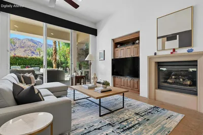 - Open Sat 11-2 & Sun 1-3 - Photos 1-7 have been digitally enhanced to illustrate the home with select updates & modern furnishings for conceptual purposes only. - Perfectly positioned within the intimate Haciendas community--an exclusive gated enclave of just 65 homes--this property is truly a hidden gem in one of La Quinta's most desirable locations. Just minutes away is the iconic La Quinta Resort & Club, a premier destination that enhances both lifestyle and long-term property value. The charm, restaurants, and boutiques of Old Town La Quinta are only five minutes away, while the renowned shopping and dining along El Paseo can be reached in about ten minutes. Everyday conveniences and essential shopping are also just 4-5 minutes from the home, making daily living effortless while keeping you close to the best of the desert lifestyle. Panoramic mountain views take center stage in this beautifully designed desert retreat overlooking the breathtaking Santa Rosa Mountains. The home's thoughtful orientation captures sweeping vistas from the great room, kitchen, breakfast nook, and primary suite--creating a constant visual connection to the surrounding natural beauty and delivering dramatic scenery from sunrise to dusk. Designed for seamless indoor-outdoor living, the expansive backyard functions as a natural extension of the home. Floor-to-ceiling windows and a large sliding door open to a generous patio, allowing the interior living spaces to flow effortlessly outside. By day, the setting is bright and inviting--perfect for relaxing beside the Pebble Tec pool and spa or enjoying multiple lounging and dining areas framed by panoramic mountain views. As evening falls, the desert sky casts a warm glow over the mountains, creating an elegant setting for entertaining or unwinding beneath the stars. Inside, the residence features vaulted ceilings, graceful rounded architectural details, a chef's kitchen with premium appliances, and a breakfast nook surrounded by sweeping 180-degree views. The luxurious primary retreat offers a fireplace, direct pool access, and a spa-inspired bath, while the attached casita includes its own fireplace, en-suite bath, and courtyard entry--ideal for guests. Combining breathtaking views, timeless architecture, and an unbeatable location close to the desert's most sought-after destinations, this property offers the perfect blend of privacy, convenience, and classic La Quinta