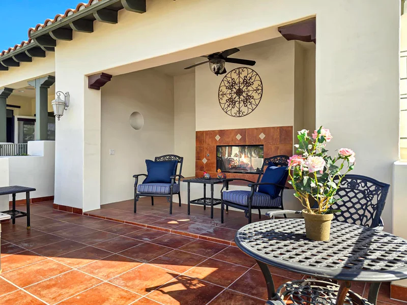 Experience true resort-style living in the heart of La Quinta! From the charming front courtyard to the breathtaking upstairs view patio, this thoughtfully designed home seamlessly blends indoor and outdoor desert living. Nearly 3,000 sq. ft. of refined luxury awaits in this beautifully upgraded 3-bedroom, 4-bath home with an open, flowing layout ideal for everyday living and sophisticated entertaining. High ceilings, rich architectural details, and abundant natural light enhance the spacious great room, gourmet kitchen, and inviting dining areas. The chef's kitchen boasts a large center island, premium finishes, and effortless connection to the main living space.Retreat to the private primary suite featuring a spa-inspired bath, generous wardrobe space, bonus craft room, and direct access to the backyard oasis. The ensuite bathroom offers a jetted soaking tub, dual vanities, and a separate shower.Outdoors, the resort-style pool and spa are framed by mountain views and tranquil privacy. Enjoy two distinct patio spaces--each with its own fireplace--perfect for relaxing evenings or weekend gatherings.Upstairs, a bonus retreat provides flexible living with room for lounging, dining, or gaming, complete with a wet bar. The space opens to a scenic patio overlooking southwestern skies, showcasing breathtaking sunsets and colorful dusk views.A detached casita with its own mini bar offers the ideal setup for weekend guests.Set within a quaint, gated community just minutes from world-class golf, hiking, dining, and shopping, this turnkey, furnished home delivers the full desert lifestyle: luxury, beauty, and effortless indoor-outdoor living.