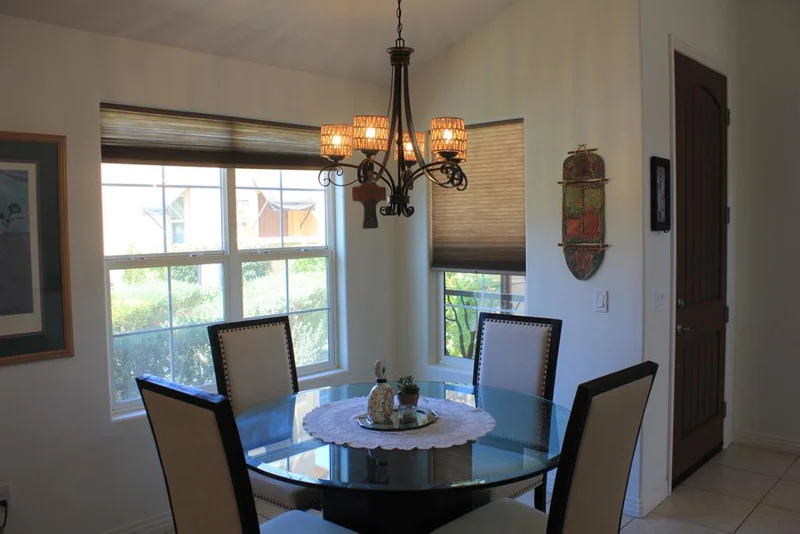 All Dates Available! Charming 2 bedroom, 2 bathroom (1 King Bed, 1 Queen Bed, each with private baths) upstairs. Seasonal lease in gated enclave of homes Cordoniz located off Ave 52 & Jefferson in La Quinta, just a quick trip to Silver Rock Resort & shopping and dining in Old Town La Quinta. Community amenities include Pool/Spa, outdoor fireplace and BBQ in gated Pool area, Tennis courts, and Fitness center. This turnkey home offers a nice floor plan. Living area with a large flat screen TV, Sleeper Sofa. Powder bath downstairs. Dining area with a Kitchen that has Granite counter tops and custom back splash. Stainless Steel appliances, pantry, breakfast bar with Drop down accent lights and dining table. Laundry, downstairs. Sliding doors to East Facing patio area. basic cable and wi-fi included. 2 car attached garage. Also, available Long Term Furnished.