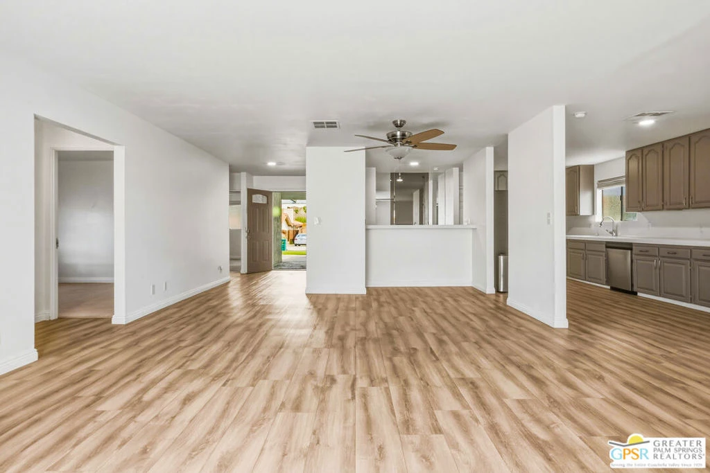 Welcome to 52925 Avenida Vallejo, perfectly located in the desirable mid-Cove area. This charming home offers a seamless blend of comfort and modern style, featuring durable vinyl flooring throughout and elegant quartz countertops in the kitchen, wet bar, and bathrooms. The updated kitchen is equipped with stainless steel appliances, providing both functionality and a sleek, contemporary feel. The bathrooms have been thoughtfully refreshed, adding to the home's move-in-ready appeal. Ideally situated just minutes from Old Town La Quinta, you'll enjoy easy access to local dining, shopping, the popular farmers market, and a variety of scenic hiking trails, perfect for embracing the vibrant desert lifestyle. *One photo of the living room is virtually staged.