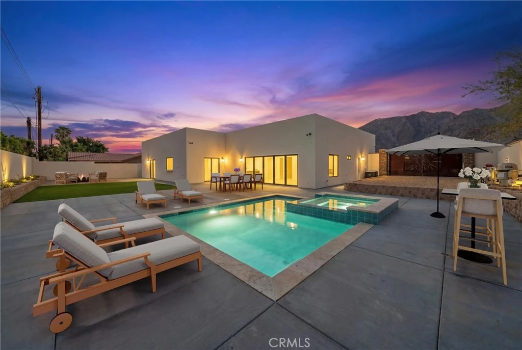 Experience ELEVATED desert living with breathtaking mountain views in this newly re-constructed 2026 custom pool estate, ideally located in the highly sought-after community of La Quinta. Situated on a rare oversized double corner lot, this exceptional property offers enhanced privacy, expansive space, and refined design tailored for both luxury living and HIGH END rental potential. This single-story residence features 4 spacious bedrooms and 5 bathrooms, each bedroom appointed with its own private en-suite—delivering comfort, exclusivity, and convenience for guests or short-term rental use. The open-concept layout is anchored by a grand great room with soaring ceilings and abundant natural light, creating a seamless environment for entertaining and relaxation. The gourmet chef’s kitchen is both striking and functional, showcasing premium stainless-steel appliances, a double oven, 6-burner cooktop with warming feature, custom cabinetry, designer lighting, and an oversized quartz island with built-in microwave. A pass-through service window enhances indoor-outdoor entertaining. The primary suite is a private retreat, featuring accordion-style glass doors that open directly to the resort-style backyard. The spa-inspired bathroom includes a soaking tub, dual shower, and elevated designer finishes. Designed for true indoor-outdoor living, the home features a meticulously designed backyard complete with a custom pool and spa, fire pit, multiple lounge areas, ambient lighting, and low-maintenance landscaping with premium turf and decorative rock. Striking ironwork enhances the home’s curb appeal, with a custom-designed front entrance gate and matching iron gate for the dedicated boat/PERHAPS RV parking—blending security with architectural elegance. Additional highlights include a fully integrated smart home system controlling lighting, climate, security, and audio/visual; whole-home audio; hardwired internet with pre-wiring for ceiling-mounted Wi-Fi access points; surround sound in the great room; walk-in pantry; custom closets; powder room; multi-car garage; and propane utilities. Located near Palm Springs and the Coachella Valley, this ESTATE presents a rare opportunity to own a modern luxury home ideal for full-time living, a second residence, or a high-performing investment property.