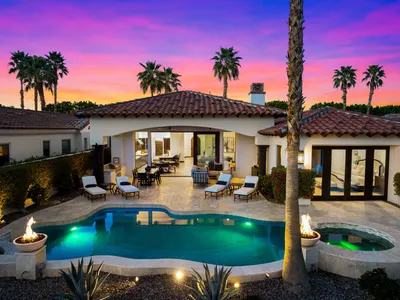 Great value! This home has an incredible location and so many upgrades!! Nestled alongside the 7th green of the legendary TPC Stadium Course at PGA WEST, this home is a masterpiece of luxury and style. This stunning 3-bedroom, 3.5-bathroom, 3,450 sq. ft. home offers a rare blend of privacy, elegance, and breathtaking surroundings. The interior was just painted enhancing the custom detail throughout this beautiful home. Imagine viewing the serene lake views and the rugged beauty of the Santa Rosa Mountains, with every sunset painting a masterpiece just for you. The outdoor living space is an entertainer's paradise--picture yourself hosting unforgettable gatherings around the firepit or at the custom sit-down BBQ island, under the comfort of a large covered patio with overhead heaters and fans. It's the ultimate oasis for enjoying desert evenings with friends and family. Inside, the home's thoughtful updates and spacious layout elevate every moment. The fully remodeled kitchen is a chef's dream, while the luxurious primary bath, complete with a dual-head shower, offers a spa-like retreat. The redesigned sit-down bar is perfect for mixing cocktails and sharing stories, and the powder room adds a touch of sophistication. There are also 3 fireplaces that add to the comfortable feel of this home. A large courtyard provides even more options for outdoor relaxation or a perfect area for your canine friends. There is also a large 2.5 car garage with plenty of room for 2 cars and a cart. Whether you're savoring the iconic golf course views, unwinding in the comfort of your private retreat, or friends and family, this home embodies the best of desert living. Luxury, comfort, and an unbeatable location. Offered turnkey furnished per inventory!