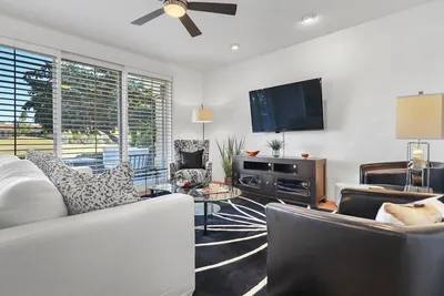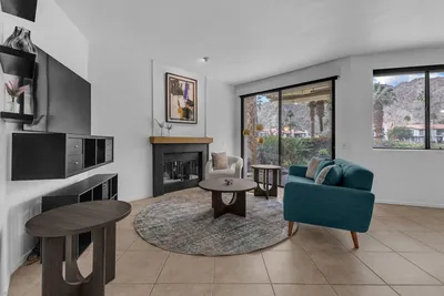 Back on the market! Come experience that feeling you get when you enter the gates of Palmer Private and your shoulders drop about four inches-- that's the life! This townhouse model has 2 bedrooms and 2 1/2 baths + additional office space or den. Right near the center of Tanglewood, this unit has full West-facing mountain views and is in splashing distance of the closest community pool. Situated on a greenbelt this property enjoys the freedom of lakefront views and soothing waterfall sounds without the restrictions of being on the course, perfect for fishing, exploring, or keeping paws cool and off hot pavement during summer months. This unit has 1,410 sq ft of well appropriated space, a new water heater (2025), newer fridge (2024), fresh paint and is ready for you to move-in and claim your dream golf get-a-way. Come live where champions play in PGA West.