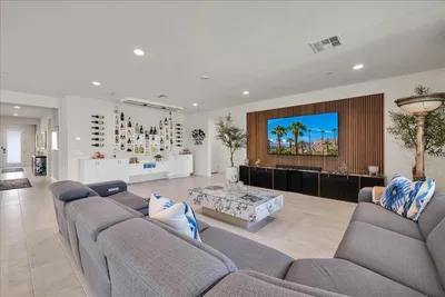 Location, location, location. Enjoy panoramic mountain views from the moment you drive up and throughout your time at this exceptional home in La Quinta. Perfectly oriented to capture natural light, the home stays bright all day, with winter sun gently warming the interior--creating a comfortable and inviting atmosphere year-round. The spacious floor plan is thoughtfully designed and enhanced by numerous upgrades, including owned 6.3 kW solar. Take in stunning mountain views from the front, back, and both sides, all while enjoying a rare level of privacy. With generous space between neighboring homes, NO city construction plans adjacent to this home, NO visible power lines, NO street noise, NO see-through builder grade fencing to ruin your events or a quiet day of tanning. This property offers a truly peaceful and secluded setting. The backyard features expansive sky views alongside breathtaking mountain scenery, with no overlooking neighbors. The outdoor space is a private resort. Lush, temperature-sensitive artificial turf stays cooler than traditional options, replacing the typical ''concrete desert'' feel with a vibrant sea of green. A custom oversized pool and spa are paired with high-capacity, quietly operating equipment for efficiency and Pool equipment is highly upgraded. The yard blends colorful landscaping, sparkling blue water, and greenery so seamlessly that it feels worlds away from the desert. Inside, the home offers abundant built-in cabinetry throughout, combining style with functionality. The entire property has been designed for low maintenance and ease of living, including low utility costs through Imperial Irrigation District. Located just minutes from premier golf at PGA West, as well as dining, hiking, biking, the Empire Polo Club, and the Indian Wells Tennis Garden, this home places you at the center of the La Quinta lifestyle. From the moment you step inside, you'll know this is a special home. Set against the dramatic backdrop of the Santa Rosa and Coral Mountains, this immaculate 3,006 SF residence sits on a premium lot and has been extensively upgraded throughout. Located near The Quarry at La Quinta, it offers a rare combination of luxury, privacy, and resort-style living. La Quinta at its finest--don't miss this exceptional home in the highly desirable Cantera at Coral Mountain community.