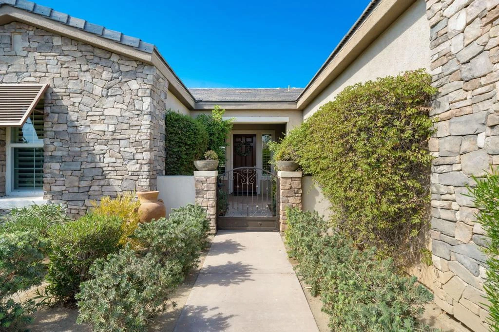 This home is located in the 55+ community of Trilogy La Quinta. Light & bright meticulously maintained Monarch model. 3 bedrooms, 2 baths, this floorplan offers 1845 sq ft of open living space. The great room has 10 ft ceilings and large windows providing ample natural light and views. The kitchen features stone counters, stainless steel appliances and a breakfast bar. The master bedroom has views to the golf course and Santa Rosa Mountains. House has king size bed in the master bedroom, Queen size bed in the guest bedroom and a fold out queen in the third room. The covered patio is great for relaxing. There's also a built-in BBQ and artificial grass are for taking in the views. Trilogy La Quinta is a 55+ gated community offering a vast array of amenities including golf, clubhouses, social activities, fitness centers, pools, sport courts, pickleball, tennis and so much more!