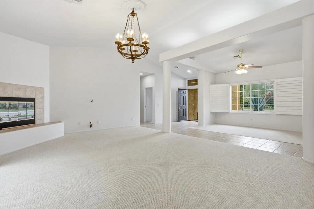 Welcome to this beautifully maintained 3 bedroom, 2 bath home in the highly desirable Bella Vista neighborhood of La Quinta, just minutes from the renowned Indian Wells Tennis Garden, charming Old Town La Quinta, and a short drive to the upscale shopping and dining of El Paseo. With a very low HOA, this home offers exceptional value in one of the desert's most sought-after communities. From the moment you enter the newly painted interior, you are greeted by an inviting open floor plan filled with natural light. The spacious living room features soaring ceilings, a cozy fireplace, and sliding glass doors that open to the patio, seamlessly blending indoor and outdoor living. An adjacent dining area creates the perfect setting for both everyday comfort and entertaining. The primary suite is a serene retreat, complete with sliding doors to the patio and an ensuite bathroom offering dual sinks, a soaking tub, a separate shower, and a generous walk-in closet. Two additional bedrooms provide ample closet space, with one ideally suited for a guest room or home office. A well-appointed hallway bath with a bathtub serves these rooms.The bright and welcoming kitchen features a breakfast bar, gas cooktop, built-in double oven, freshly painted wooden cabinetry, and a sunny morning room with patio access. In May of last year, an energy-efficient, quality-brand refrigerator and microwave were installed, adding modern convenience and value. Just off the kitchen is a full-sized laundry room with washer, gas dryer, utility sink, and storage cabinets, along with direct access to the two-car garage. One of the home's most valuable upgrades, especially in the desert climate, is the high-efficiency Bryant Preferred(tm) newer air conditioning system installed less than a year ago. This dependable and efficient upgrade offers peace of mind, and lower energy bills. Throughout the home, elegant plantation shutters adorn every window and sliding door. The backyard is designed for relaxed desert living, featuring low-maintenance landscaping, a relaxing fountain, a concrete patio, a spacious storage shed with shelving, and convenient RV parking for your recreational needs. Additionally, electricity is provided by Imperial Irrigation District (IID), known for lower utility rates compared to surrounding providers. This lovingly cared-for home shines with pride of ownership. Come experience desert living at it's finest! Please note that some of these pictures are virtually staged.