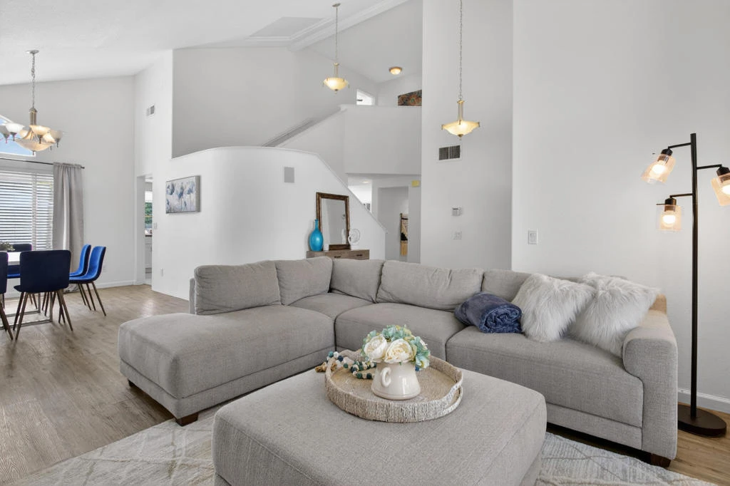 Charming south facing home in the heart of North La Quinta. 4 bedroom 2.5 bath 3 car garage with no HOA! Great bones, solid layout and tons of upside possibilities. This two-story home sits on a large level lot with private pool and spa covered patio. Ideal for full-time living or vacation rental (30 day minimum). All bedrooms are upstairs with a split staircase and open overview of great room. Open floor plan features kitchen overlooking the bonus room and the pool so you can keep an eye on the Fun while you prep for meals. Wet bar with extra storage. The garage has direct access to home. The third garage has separate entrance ( perfect for ADU conversion extra income potential) Also features workshop and storage great for hobbies. The swamp cooler keeps garage cool usable all year round. Kitchen has granite countertops, stainless steel appliances and newer cabinets. Ceiling fans in every room, wired for high speed internet, and pre wired alarm system. Close to the famous INDIAN WELLS TENNIS Gardens! In the DSUSD school district just minutes from Shopping, Restaurants, and Dog Park nearby. Home needs some cosmetic updates. Bring your vision and make it your own. Turnkey, furnished, and ready for you to add your touch!