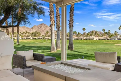 Experience the ultimate La Quinta lifestyle in this stunning 4-bedroom home with private casita, showcasing custom finishes & gorgeous poolside mountain views. A private courtyard leads to the expansive great room overlooking the sparkling saltwater pool & spa, enhanced by southern exposure & natural light. Sophisticated design defines every space--from the wood-panel dining room to the brick-accented, acoustically trimmed media room, & the open kitchen with custom cabinetry, luxury lighting, & art-inspired backsplash. The primary suite offers a resort-style bath, sitting area, dual walk-in closets, & tranquil pool views. Outdoors, enjoy a chef-inspired kitchen with California-room dining, fire-pit lounge, outdoor shower, & luxury turf surrounding the sun-soaked pool with water features & tanning shelf. Lush landscaping & serene seating areas capture dramatic sunset mountain views. Additional highlights include 20 OWNED solar panels, a 2-car garage with built-in storage, butler's prep room with walk-in pantry, laundry room, and an en-suite casita with separate entry. The gated enclave at Capistrano LQ offers a community park with greenbelt and covered seating--ideal for morning walks, dog lovers, & sunset picnics. A private, stylish retreat designed for elevated desert living.