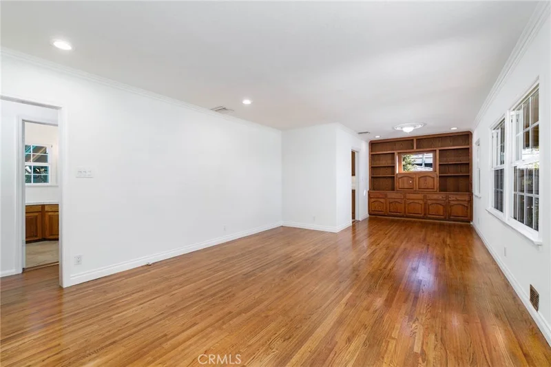 Welcome home to this charming single-story gem nestled on a corner lot in a quiet cul-de-sac, just walking distance to the elementary school. Freshly painted inside and out, this home is full of curb appeal and character. Inside, enjoy hardwood floors throughout with brand-new laminate flooring in the primary bedroom, dual-pane windows, crown molding, and LED recessed lighting that create a bright, welcoming feel. The living room features a large picture window and flows into the dining area with a built-in oak hutch. The kitchen offers granite countertops, oak cabinetry, a farmhouse sink, a brand-new dishwasher, and a built-in microwave. Gather in the family room with a classic brick fireplace and direct backyard access. The spacious primary bedroom features a built-in desk, along with two additional bedrooms, a full hall bath, and a separate laundry room with built-in cabinetry and a wine refrigerator. Enjoy the backyard with a covered Trex patio, ideal for relaxing or hosting guests. 1-car attached garage with pull-through access to an oversized detached 1-car garage with great ADU potential. Move-in ready and easy to fall in love with!