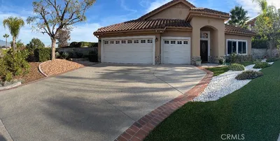 Remodeled home situated in a tucked lot of a quiet cul-de-sac located in the Emerald Ridge at Live Oak gated community. This home offers a long driveway leading to a two-car garage, landscaped front yard, and a covered front porch. Inside, enjoy soaring ceilings and a bright, open floor plan with a view of the center staircase and the living room featuring durable LVP flooring, large windows with plantation shutters, and an adjacent formal dining room with a chandelier and backyard view. The updated kitchen includes wood cabinetry, quartz countertops with full backsplash, stainless steel appliances, recessed lighting, and a breakfast nook, and is open to the family room. The family room has a fireplace with a mantel, windows with shutters, and access through glass French doors to a versatile space, ideal as a playroom, office, or additional lounge, that can remain private or open to the family room. Downstairs also offers a bedroom with double entry doors (currently used as an office), a remodeled bathroom with a custom tiled shower and updated vanity, a laundry room with cabinetry, and direct access to the attached two-car garage. Upstairs, the primary bedroom features a vaulted ceiling, double glass French doors leading to a balcony with mountain and greenbelt views, and direct access to the bathroom. The bathroom offers travertine tile in a versailles pattern, dual sinks, a frameless glass shower, separate tub with greenbelt views, and a walk-in closet with mirrored doors. Two additional bedrooms and a remodeled hall bathroom complete the upstairs. The backyard is set against the greenbelt with no direct neighbor, custom stonework, various trees, planters, a small wood deck, a stone fountain waterfall, and two side yards. The HOA offers a pool, spa, and an RV storage area for residents nearby. Choose La Verne or Claremont Schools, if La Verne, it’s Bonita Unified and attends Oak Mesa Elementary.