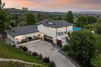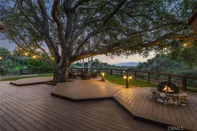 Nestled within the serene expanse of Live Oak Canyon, this 1982 custom-built redwood contemporary masterpiece offers a rare blend of architectural character and equestrian potential. Situated on a private, gated lot with panoramic valley and mountain views, the residence strikes a perfect balance between clean modern lines and the warm, inviting soul of a cabin. Soaring cathedral ceilings, river rock accents, and rich barnwood floors define the main living spaces, while expansive windows and wood shutters frame the breathtaking scenery. This home is a true sanctuary for those seeking a sophisticated rural lifestyle without sacrificing proximity to the city. The home’s innovative layout is thoughtfully designed for versatile living, featuring two distinct wings that can seamlessly function as a single grand estate or two private, independent residences. The primary wing is a masterclass in luxury, anchored by a primary suite with a private balcony with views of the valley, a redwood appointed fireplace, skylights, dual closets, and a completely updated spa-like bathroom featuring dual sinks, a standalone tub, and walk-in shower. Downstairs is another private suite with bedroom, updated bathroom, and valley views. The heart of the home boasts a recently updated chef’s kitchen equipped with a Sub-Zero refrigerator, double ovens, and crisp white quartz countertops. The secondary wing—complete with its own living room, two bedrooms, loft, kitchen, laundry area, and updated bathroom—offers an ideal solution for extended family, long-term guests, or a dedicated home office retreat. Outdoor living is elevated by approximately 2,000 square feet of wood and composite decking, providing a sprawling stage for entertaining against the backdrop of the canyon. The grounds feature a fully equipped outdoor kitchen, a stylish pergola, and lush lawn space with significant room to customize. Modern essentials are well-accounted for, including a 200-amp electrical panel with newly buried supply lines (2025), a three-car garage, and a hot water recirculation system. This estate is a rare opportunity to own a legacy property that offers both the privacy of a mountain retreat and the functional flexibility required for modern, sophisticated living. Located within the award winning Claremont Unified School District and with proximity to the 210 and 57 freeways, as well as the Claremont Colleges, this is the perfect place to call your forever home.