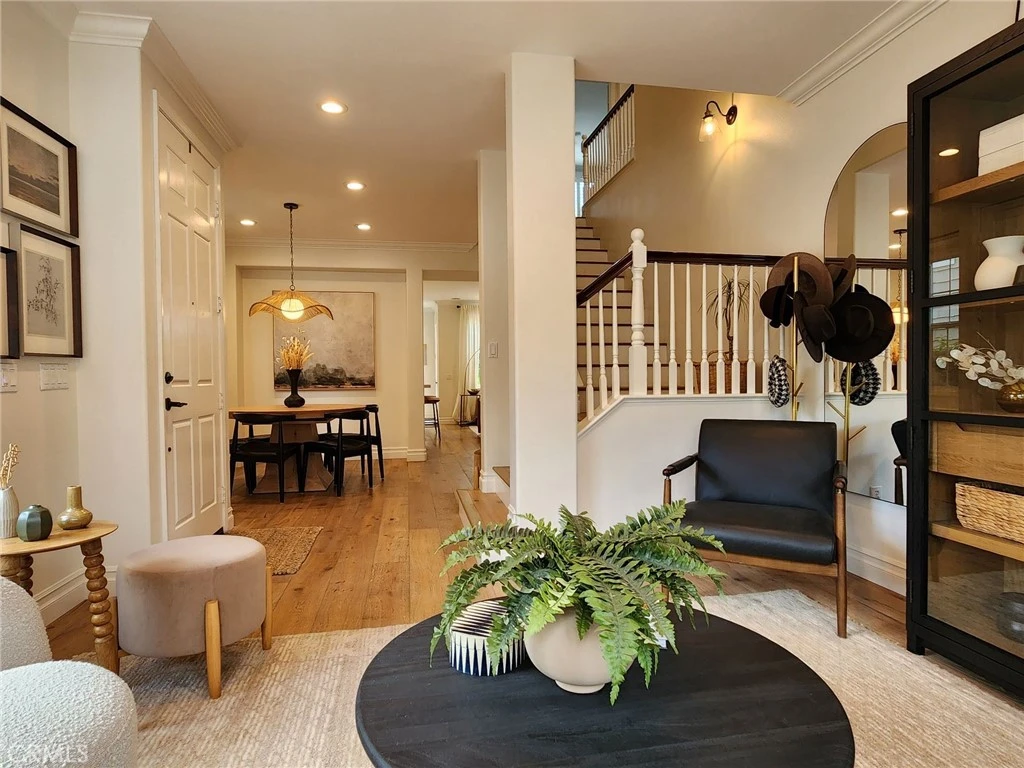 Situated on a quiet cul-de-sac just a short walk from Poet’s Park in the heart of Ladera Ranch, this 2,600 sq ft single-family residence offers five full bedrooms and an exceptional floor plan. The home features numerous quality upgrades, including plantation shutters, crown molding, cased windows, surround sound, and custom built-ins. The open-concept kitchen and family room are thoughtfully designed with a center island, natural stone backsplash, wood and tile flooring, and upgraded countertops. The versatile layout includes a downstairs bedroom or playroom with a full bath, along with a third-level bonus loft and private en-suite bedroom. Separate living and dining areas provide additional space for entertaining. The beautifully landscaped grounds feature stonework, a covered patio, and ample room for outdoor enjoyment. Located in one of Orange County’s premier communities, residents enjoy access to parks, scenic trails, and resort-style pools.