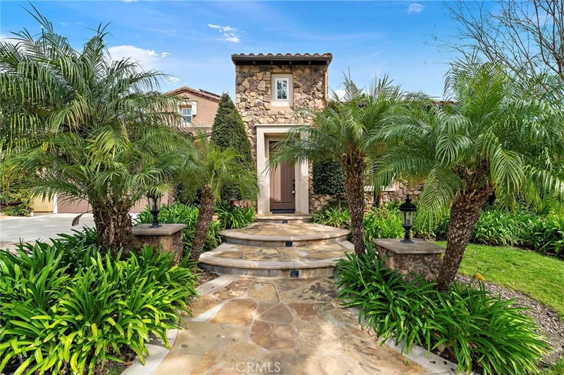 Discover luxury living in the guard-gated community of Covenant Hills in Ladera Ranch. Situated on a prime ~8,000 sq ft corner lot with only one neighboring home and a beautiful greenbelt alongside, this ~3,700 sq ft residence offers exceptional privacy and direct access to a nearby park from the courtyard. The home features 4 bedrooms and 4 bathrooms, including a spacious main-level primary suite with direct access to the patio and backyard. The main level also offers a grand formal living room, dining room, and an office nook opening to a charming courtyard with a fountain. The inviting family room with fireplace opens to the kitchen, creating a great space for everyday living and entertaining. The kitchen features granite countertops, high-end stainless steel appliances, and ample cabinetry. Upstairs includes three generously sized bedrooms and a large loft with beautiful park views, ideal for a media room, office, or additional living space. Outdoor living is equally impressive with a gated entry courtyard and a private backyard featuring updated hardscaping, a gas BBQ island, and an outdoor fireplace perfect for gatherings and relaxation. Additional features include a three-car garage with EV charging, plantation shutters, new laminate flooring, and two newer AC units (separate systems for upstairs and downstairs) for optimal comfort and efficiency. The home also includes a solar system under a prepaid lease with no monthly payment, helping keep electricity costs low, with the agreement to transfer to the buyer at close of escrow. Residents of Covenant Hills enjoy resort-style amenities including a private clubhouse, pools, tennis courts, scenic trails, parks, and top-rated schools, all conveniently located near shopping and dining.