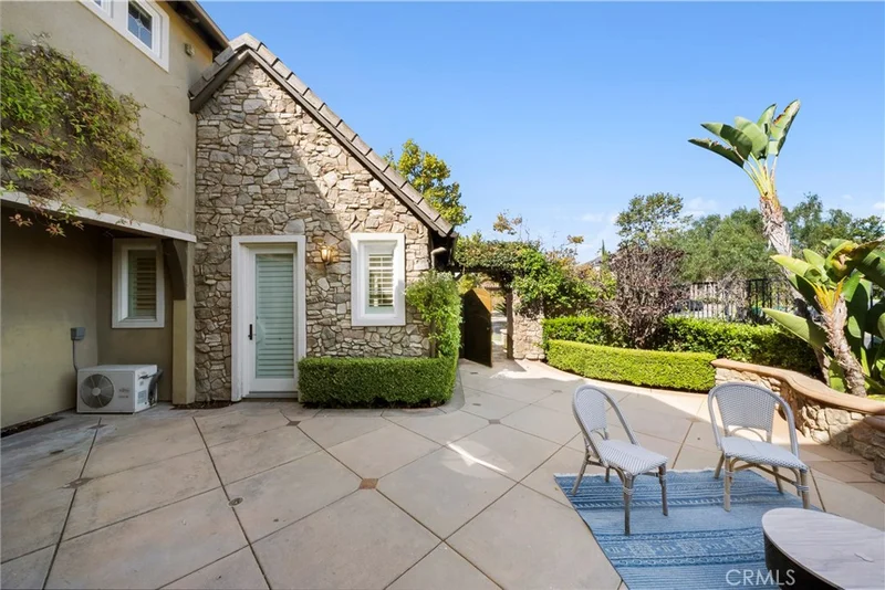 Huge Price adjustment. Welcome to this beautifully crafted French country-inspired estate, located at the end of a peaceful cul-de-sac and next to a tranquil greenbelt, offers a blend of luxury, comfort, and convenience. The impressive courtyard sets the tone, inviting you to step inside and experience the warmth of a romantic outdoor fireplace hearth. The main living areas include expansive formal living and dining rooms, an open-concept kitchen with a central island, stainless steel appliances, and a cozy breakfast nook. The adjoining family room offers ample space for relaxation, and the lower level includes a generously sized guest en-suite bedroom. Upstairs, a grand Cinderella staircase leads to a magnificent master suite, complete with a private balcony offering scenic views. The luxurious master bath features intricate leaded glass windows and custom finishes. Two spacious ensuite bedrooms, along with a large loft area equipped with built-ins, a decorative balcony, and a convenient hobby niche, complete the upper level. The private Casita could easily be converted into yet another bedroom. Throughout the home, custom millwork, arched doorways, trim, and built-in cabinetry add both elegance and practicality. The finishes include natural stone floors, elegant granite countertops, custom wood cabinetry, tailored window treatments, and neutral paint tones that enhance the home’s timeless appeal. The rear grounds are perfect for entertaining, with a built-in BBQ island, seating area, and a lovely ambiance. A three-car tandem garage with epoxy flooring completes this dream estate, making it the perfect home for any discerning buyer. Conveniently located near schools, a clubhouse, sports courts, a water park, and the central paseo, this estate offers both privacy and accessibility. 24 Hour guarded Covenant Hills Community offers the Best in Orange County Living.