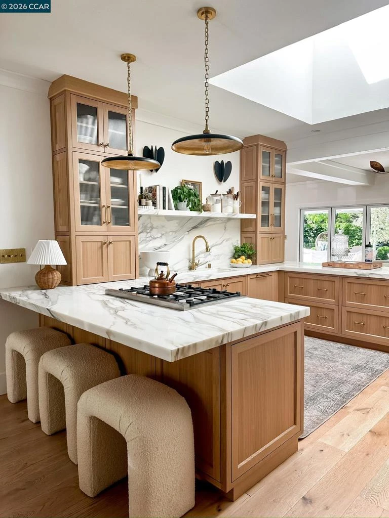 Turnkey and completely remodeled, this beautifully updated 3-bedroom, 3-bath home with a separate 1-bedroom, 1-bath ADU/guest house offers the perfect blend of thoughtful design, modern upgrades, and effortless indoor-outdoor living. Renovated from top to bottom with custom finishes throughout, the home features a stunning chef’s kitchen remodeled in November 2024 with Calacatta Borghini marble countertops, custom white oak cabinetry, fully integrated Miele appliances, Visual Comfort lighting, and a charming custom coffee bar with French doors. The primary ensuite was remodeled in December 2025, and the primary suite also features a fashion lover’s dream walk-in closet. All bedrooms include their own ensuite bathrooms, and all bathrooms feature marble flooring, countertops, Kohler fixtures, and heated floors, creating a spa-like experience throughout the home. Custom millwork and cabinetry elevate the living spaces, including a built-in entertainment center, bar, and breakfast nook. Panoramic accordion doors open to the backyard, while matching doors on the ADU create a seamless connection between indoor and outdoor living—perfect for entertaining. The fully relandscaped backyard (2024) features a mature 30-year-old fruitless olive tree, built-in gas fire table, and more!