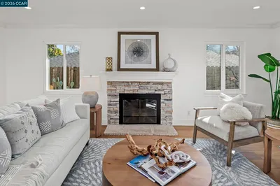 Just steps from the popular Lafayette/Moraga Trail, this updated single-story home with a flexible floor plan is an ideal blend of charm and modern convenience. The interior features three bedrooms, plus a flexible bonus room that is an ideal media room, home office, or fourth bedroom, two bathrooms, and stylish, wide-plank oak hardwood floors throughout. The kitchen serves as the heart of this residence, showcasing sleek quartz countertops and stainless steel appliances while flowing effortlessly into the dining area and outdoor space. Natural light pours into the living room through expansive windows, where a cozy fireplace acts as a central focal point. In the primary suite, comfort meets luxury. This true retreat includes double closets, a spa-inspired ensuite bathroom with a twin vanity and oversized shower, and a door leading directly to the backyard patio and hot tub. The exterior is a year-round haven featuring a level lawn, vibrant gardens, a built-in BBQ, and two separate patios perfect for gatherings. Situated in popular Lafayette Estates, the home is surrounded by peaceful, tree-lined streets and is just minutes from the Lafayette Community Center, Community Park, and top rated Burton Valley Elementary.