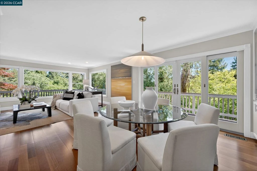 Warm and welcoming home in sought after Hidden Valley! Set at the end of a cul-de-sac with privacy and a beautiful setting, this spacious home offers an ideal floor plan with four bedrooms plus a detached office, charming outdoor living, and walls of glass with Andersen doors that feature the picturesque, nature studded property with views. A great entertainer with delightful outdoor living that includes a built-in bbq, wonderful gas fireplace and arbors. Mature trees and landscaping include Japanese maples, birch trees, hellebore, ferns and enchanting moss covered rocks. Inviting flagstone entry and trimmed driveway, wrap around deck and pathways, raised vegetable beds. Updated throughout, the home features hardwood floors in the living areas, large rooms with spanning windows and glass doors, a beautiful fireplace with stone surround, dining and family rooms with built-ins and a well-equipped kitchen with quality appliances including Dacor gas cooktop, Samsung refrigerator, GE double ovens, Miele dishwasher. Detached office presents an ideal work from home setup. There is a bonus room off the garage with laundry, storage and a workshop. Exceptional location, convenient to both vibrant downtown Lafayette with great shops and restaurants, the Lafayette Reservoir and commute access. Highly desirable schools included Happy Valley Elementary, Stanley Middle and Acalanes High.