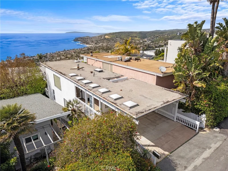 This stunning coastal retreat offers sweeping, unobstructed ocean and coastline views from Catalina Island up the coast toward Rancho Palos Verdes, with whitewater surf, vibrant sunsets, and sparkling city lights along the shoreline. The home has undergone an extensive renovation, with the owners investing a significant amount of time and care into every detail to create a modern, luxurious coastal living experience. Ocean views are visible from the main living areas, the spacious deck off the living room, and a private deck off the primary suite. The open concept living space features high beamed ceilings, skylights, and hardwood flooring, creating a bright and inviting setting for everyday living and entertaining. The kitchen has been fully remodeled with custom cabinetry, white marble countertops, premium Wolf appliances, a breakfast bar, and a spacious pantry. Large windows and the adjacent deck with glass railings allow for sit-down ocean views and seamless indoor-outdoor flow. The home includes four bedrooms, each with an en-suite bathroom, offering privacy and convenience. The primary suite features a private deck to take in the breathtaking views. Renovated bathrooms include updated fixtures, vanities, countertops, toilets, and new shower enclosures. Additional interior improvements include new flooring, windows, doors, plumbing, wall insulation, and fresh paint. Two bedrooms with separate entrances provide flexible use for guests, a home office, or studio. In addition to the two ocean-view decks, outdoor living is enhanced by two covered courtyards and an upgraded patio with new decking, surrounded by lush foliage for complete privacy and relaxation. Nearby Moulton Meadows Park offers tennis, basketball, pickle ball, soccer, play structures, a dog park, and world renowned hiking; while the best beaches, restaurants, and galleries Laguna Beach has to offer are just moments away.