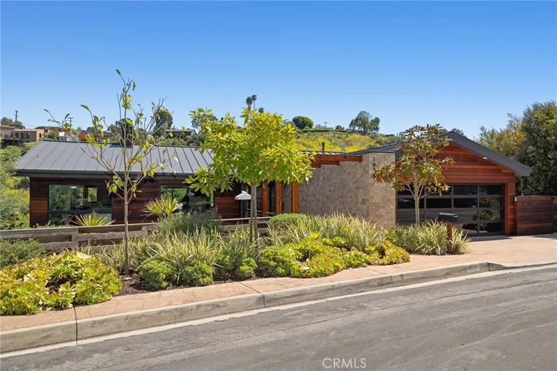 Showcasing a modern design aesthetic with exceptional architecture inside and out, this custom Laguna Beach home brings the beauty and serenity of canyon and evening-light views into fabulously open living spaces. Located on an enormous homesite of more than 53,000 square feet at the end of a cul-de-sac just moments from the vibrancy of Laguna Village, the residence reveals lush landscaping that complements stone, wood and steel exterior materials. A large glass entry door opens to a stunning interior where an organic blend of cohesive elements is embellished with on-trend decor. An abundance of natural light streams through vast windows and slide-away pocket doors, creating a seamless indoor/outdoor ambiance while illuminating approximately 5,420 square feet that includes five bedrooms, four of which are en suite, and seven baths. Each level offers easy access to the outdoors, with the main floor’s dining room, fireplace-warmed living areas, and kitchen flowing to a deck to create one large and open living space.Imagine the memories created while entertaining friends and loved ones during special celebrations, all with tranquil canyon vistas as a peaceful backdrop. Custom wood cabinetry and Mont Blanc quartzite countertops capture the eye in a kitchen with oversized island, open shelving and a full tile backsplash. Top appliances include a six-burner Thermador range and a built-in refrigerator and dishwasher from Miele. A junior primary suite and an ocean-view office with deck access are also featured on this floor,giving it the feel of single-level living.Follow a dramatic floating staircase to the second floor, which hosts a family room, secondary suites and the primary suite.For the ultimate in personal luxury, this grand suite is refined with generous proportions. Opening to the deck, the suite hosts a fireplace and a walk-in closet with custom built-ins.The primary bath is infused with the feel of a five-star resort,complete with freestanding tub, oversized shower, two sinks and gorgeous stone finishes.The lowest level is primed for entertaining with a game/media room, fireplace, wet bar,378-bottle wine cellar, guest suite,and a towering two-story wall of glass.Solar power,a standing-seam metal roof, and an attached two-car garage are joined by ample guest parking. Minutes to the sand, top-rated schools, galleries,restaurants and trails,this showplace captures the unique energy of Laguna Beach in one special place that you will be proud to call home.