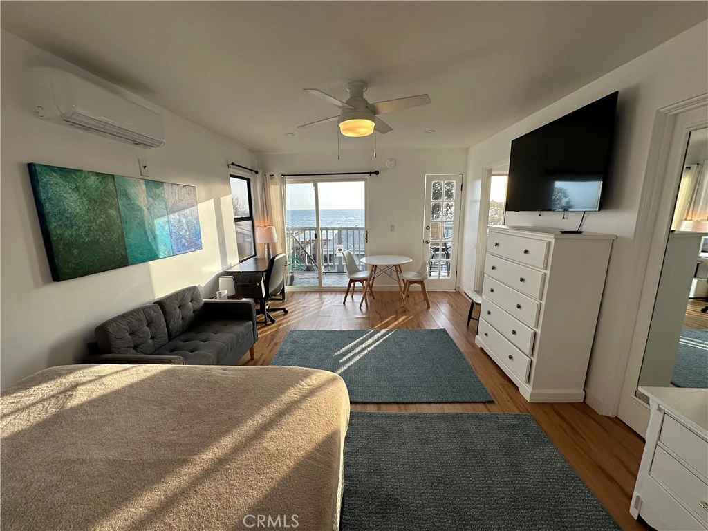 APRIL SPECIAL: Enjoy amazing views and golden sunsets on a huge deck overlooking the Pacific Ocean and Catalina Island. This bright, renovated studio features big windows and the best of beach living. Close to the world famous Woods Cove Beach, you are just steps from the sand, restaurants, cafes, stores, and nightclubs. Air conditioned. Heated. Free access to the washer and dryer in the building. Furnished cleanly with Queen bed, sofa chair and modern furniture. This price valid only for April 2026. The apartment is available immediately and through May 1, 2026 at 11am. Tenant needs to vacate at May 1 to allow the next tenant to come in. An extension is not possible. This is a last minute special to fill out the rental from someone who had to leave because of an emergency. Furniture may vary slightly from photos. Apartment is fully furnished and equipped.