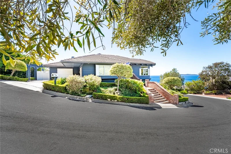 Discover this breathtaking 4-bedroom retreat nestled in the prestigious Coast Royal neighborhood of South Laguna Beach. Perched on a corner lot near the end of a small cul-de-sac, this private home boasts panoramic ocean and canyon views. Step inside to discover you're surrounded by ocean and hillside views from every window. The inviting living space is bathed in natural light, expansive windows that frame the dramatic scenery, and warm oak flooring that sets the stage for elevated, coastal living. Imagine hosting dinners in a dining room with seated ocean views, soaring exposed-beam ceilings, and a table to gather nine while enjoying the sunset. The thoughtfully-designed kitchen boasts high-end appliances, walk-in pantry, window banquet seating, and a functional layout ideal for everyday living and entertaining. Steps away, a second living area invites you to unwind beside a charming stone-faced fireplace. Open the South-facing Dutch door or French doors to reveal a sprawling deck that wraps the front of the home; take in the dramatic views from lounge seating or while eating al fresco at the dining table. The lower level features four spacious bedrooms, each with ocean views! The expansive primary suite is a tranquil retreat with direct access to deck/yard and an oversized walk-in closet with built ins. Elegant ensuite bathroom features a clawfoot tub, shower with a Catlaline view and Carrera marble double vanity. The additional three bedrooms share a beautifully-remodeled bathroom, offering comfort and style for family or guests. Laundry room with plenty of storage completes the lower level. The outdoor living spaces include two scenic-view balconies perfect for unwinding or dining, a spacious lower deck with inviting seating, and a landscaped backyard with artificial turf for easy maintenance and year-round greenery. Parking is a breeze with a highly sought-after two-car garage complemented by an additional partially-covered carport, an exceptional find in Laguna Beach. Ideally located just moments from popular West Street and Table Rock Beaches, as well as the popular Valido Trail. This home offers the ultimate blend of coastal luxury and quick access to The Montage Laguna Beach and The Ranch at Laguna Beach. Don’t miss the opportunity to experience the best of South Laguna in this exceptionally-located and maintained property!