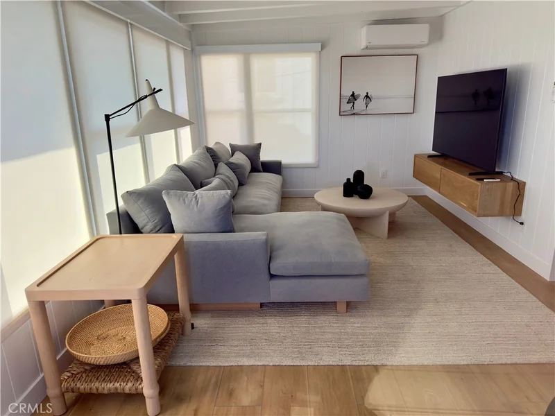 Brand new remodeled Cottage/Back House with panoramic Ocean, Catalina, and City Light views in North Laguna, just above Boat Canyon. This charmer is turn-key, was taken down to the studs and rebuilt with all high-end materials, and is just 2 blocks from the beach (Divers Cove, Heisler Park, and Fisherman's Cove). Enter from the back (off alleyway or along private path along East side of 252 Grandview to back) to an open deck surrounded by lemon trees. A wall of windows in the Living Room offers sweeping Ocean Views. High-beamed ceilings and new wood floors create a bright, beachy chic escape with tasteful decor and a large flat-screen TV. The remodeled kitchen has top-of-the-line appliances and is completely equipped with dishware, cookware, coffee machine, etc. for a comfortable stay. Full-sized stackable laundry in Hallway closet, new bathroom with step-in shower, and a primary bedroom with a King-sized bed, flat-screen TV, and walk-in closet. A/C and Instant Hot Water Heater. There is an outdoor shower for washing off the sand after a relaxing day at the beach. Restaurants and shopping are just steps away at Boat Canyon (Pavillions, ReUnion Kitchen, Grazie Pizza, Jan's Health Bar, Asada Tacos, and Black Dot Coffee) along with Gallery Row and all Village shops. Inquire about availability - this is a short-term rental, seasonal rates apply (price listed is off-season rate).