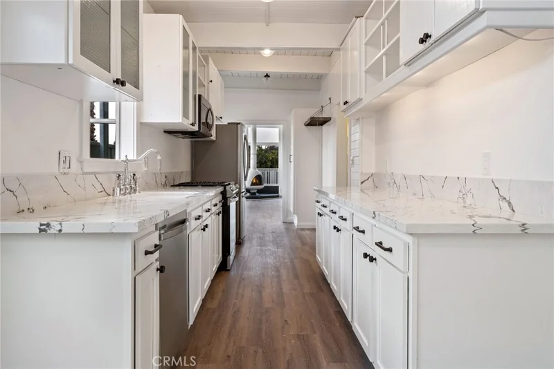 This property truly stands out amongst its peers, offering sweeping ocean views that set the tone for exceptional coastal living. The main residence features 3 bedrooms and 3 bathrooms with soaring ceilings, open-concept living and kitchen spaces, a wrap-around deck, and three fireplaces-all designed to capture and showcase the views. From the living room to the family room, ocean vistas and refreshing sea breezes flow effortlessly through the home, creating an airy, indoor-outdoor lifestyle framed by the Pacific. Upgraded finishes through support easy beach living, including quartz kitchen countertops, a sea-foam blue primary shower, and a newly remodeled downstairs bathroom with a coastal modern aesthetic. Thoughtful storage abounds with a walk-in pantry, cedar-lined closets, a storage garage large enough for a golf cart, an additional storage closet, and a full laundry room. In addition to the main residence, the property includes separate living quarters with two bedrooms and one and a half bathrooms. Whether used as guest accommodations, a rental opportunity or a private coastal retreat, this space offers flexibility along with a secluded garden, raised deck and perrgola-ideal for al fresco living. Completing the offering, this oversized property provides parking for up to seven vehicles, a rare and valuable luxury at the beach-because ocean view-homes should never come with parking compromises.