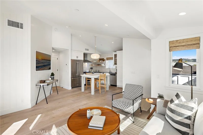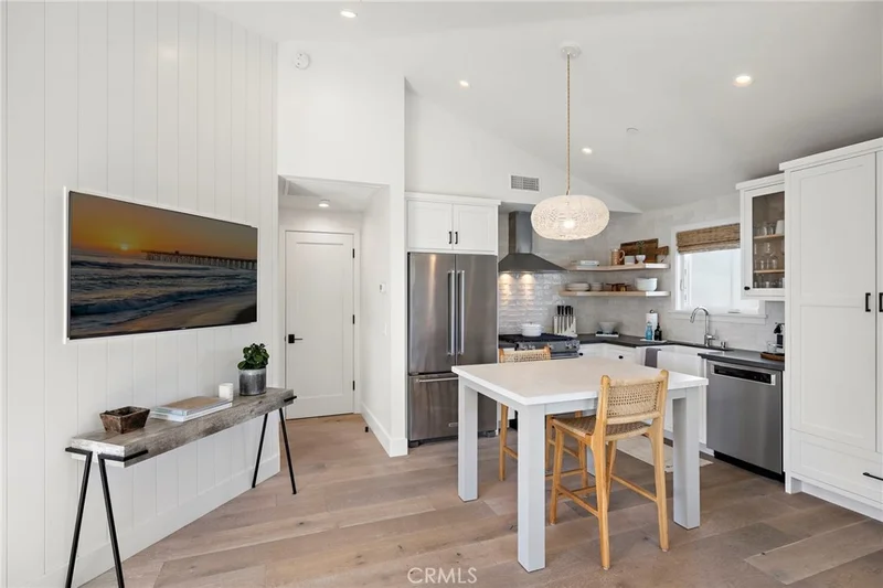 This gorgeous coastal retreat offers an open-concept living space with vaulted ceilings and abundant natural light throughout. Thoughtfully designed with a clean coastal aesthetic, this charming rear unit (1 bedroom, 1 bathroom) welcomes you with a covered porch entry and opens into an airy living area surrounded by windows that fill the home with sunshine. The stylish kitchen is fully equipped and features custom cabinetry with pantry storage and pullout drawers, stainless steel appliances, a farmhouse sink, and open shelving that adds both character and functionality. A built-in desk nook provides the perfect work-from-home or study space, while large windows and high ceilings enhance the bright, open feel of the home. The bedroom serves as a peaceful retreat with a generous walk-in closet and a beautifully designed bathroom featuring dual sinks, custom cabinetry, a glass-enclosed shower, and a separate toilet area for added privacy. Additional conveniences include an in-unit washer and dryer, designer finishes throughout, thoughtfully curated furnishings, and a fully equipped kitchen. The property also features a private balcony with a gas grill and a dedicated carport parking space equipped with an electric vehicle outlet. Located just moments from Laguna’s favorite beaches, downtown shops and restaurants, and all that Laguna has to offer, this beautifully appointed space feels like a one-bedroom suite in a luxury boutique hotel.