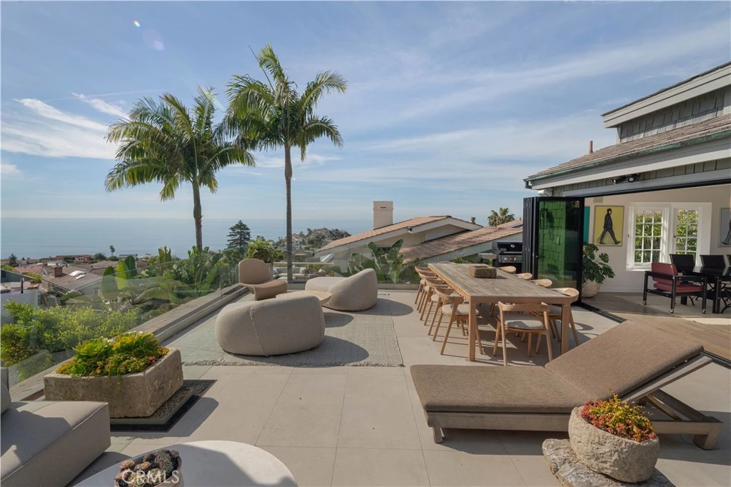 EMERALD BAY | LAGUNA BEACH | SUMMER RENTAL Available June, July, and August 2026 | $50,000 per month Experience the best of coastal living in this beautifully updated soft-contemporary residence located within the highly sought-after community of Emerald Bay. Designed for effortless summer living, this exceptional home blends refined interiors with breathtaking panoramic ocean views. Thoughtfully expanded and upgraded, the home offers 4 bedrooms, a private office, 4 full bathrooms, and a guest powder room, all enhanced by an open floor plan and dramatic vaulted ceilings that create a bright and airy atmosphere throughout. Guests arrive through a charming private courtyard, an inviting space featuring a fire pit and built-in seating—perfect for relaxed evenings under the coastal sky. Inside, the home reveals thoughtful architectural details at every turn, from the wide gallery-style hallways reminiscent of an art gallery to the warmth of three interior fireplaces that add character and comfort. The main living level seamlessly blends indoor and outdoor living. Expansive living and dining areas open to the terrace through a wall-to-wall La Cantina glass door system, creating a stunning connection to the outdoors. Nearly 700 square feet of ocean-view terrace space provides the ideal setting for entertaining or unwinding while enjoying sweeping vistas of Emerald Bay’s whitewater coastline, the Dana Point Headlands, Laguna Beach city lights, and unforgettable sunsets. The modern chef’s kitchen features a seated island, Sub-Zero and Wolf appliances, and a walk-in pantry, all positioned to capture the same spectacular ocean views. Also located on the main level are the primary suite and bath, a guest powder room, and access to a private rear yard retreat. The lower level offers three additional bedroom suites, a private office, and an indoor laundry room—providing both comfort and privacy for family and guests. Completing the home is an oversized finished garage with parking for two full-size vehicles. A rare opportunity to enjoy an unforgettable summer in one of Laguna Beach’s most exclusive oceanfront communities.