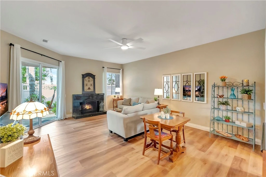 Welcome to the peaceful, highly desirable community of Crestline located in Laguna Hills, beach close, and with easy access to everything! This beautifully appointed 2 bedroom, 2 ½ bath home is move-in ready. You will delight in this spacious, open floorplan, with soaring ceilings, wood burning fireplace, fully remodeled kitchen with custom cabinetry, stainless steel appliances - refrigerator included, 5 burner gas range, built-in microwave and dishwasher; granite countertops and farmhouse sink with upgraded faucet. The separate pantry with shelving is an added plus. The kitchen opens to the spacious dining area and living room with wood burning fireplace. Natural light abounds! Enjoy the breeze coming through the patio sliding door or soak some sun on your private patio with gate access to the greenbelt area. The downstairs guest bathroom enhances this great floorplan. Full house PEX piping, new A/C unit, and new water heater top the list of wonderful improvements! The luxury vinyl plank flooring, designer paint colors, custom baseboards, ceiling fans, upgraded lighting throughout, and window coverings enable you to move in and start enjoying your new surroundings immediately! The two ensuite bedrooms upstairs are so spacious! Both bathrooms have been upgraded with new vanities, lighting, and fixtures. Separate upstairs laundry room with the front-loading washer and dryer set included! Comfort abounds in this wonderful home so race to make it your own! The schools are excellent with distinguished rankings. The Laguna Hills Community Center is right up the street with a beautiful park, playground, skate park, soccer and baseball fields. Shopping, dining, Costco, the Aliso Viejo Town Center, Trader Joes, the Toll Road and freeway are close, making this home perfect in so many ways! Welcome home!