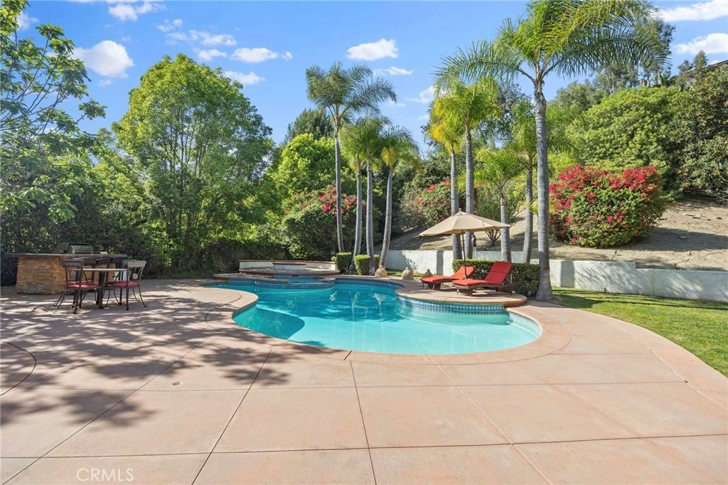 Discover Elegance in Nellie Gail Ranch! This stunning 5-bedroom, 4.5-bath home sits on an expansive 30,044 sq ft lot in the prestigious equestrian community of Nellie Gail Ranch. Soaring vaulted ceilings and abundant natural light fill the formal living and dining rooms, creating a bright, open atmosphere perfect for family life and entertaining. The main-level guest suite with en-suite bath offers privacy and convenience, while upstairs, the luxurious primary suite features a cozy fireplace, private balcony, rear office, and a spacious, beautifully appointed en-suite bath. A second upstairs bedroom also includes an en-suite bath, while the remaining two bedrooms share a full bath, providing flexibility and comfort for family or guests. Step outside to a backyard designed for entertaining: sparkling pool, spa, fireplace, fire pit, and expansive deck, perfect for gatherings and outdoor enjoyment. Residents enjoy unparalleled amenities, including parks, equestrian trails, arenas, Tennis & Swim Clubs, and top-rated schools—all with low HOA dues. This exceptional home blends space, elegance, and a premier Southern California lifestyle.