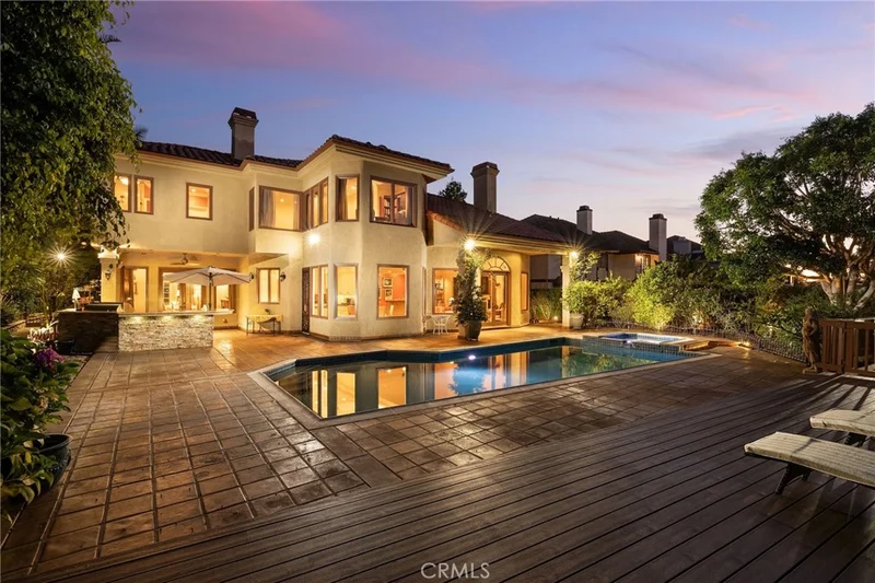 Set on a highly-desirable, cul-de-sac street in Nellie Gail Ranch, this custom-built, fully gated estate achieves a rare blend of elegant grandeur and relaxed California living. Framed by lush landscaping, the half-acre grounds create a private backdrop for hosting and relaxed daily living. Cook at the outdoor kitchen, linger by the saltwater pool or spa, then wind down on the patio or private deck as the day cools. Inside, an ideal floor plan combines dramatic scale with thoughtfully arranged spaces. A soaring two-story family room with wet bar flows out onto the exterior, while the executive library finished in custom oak woodwork lends warmth and sophistication. The chef’s kitchen features a large center island, ample storage, and direct connection to formal dining and outdoor entertaining areas, making it a natural hub for gatherings. Five bedrooms include a main-level suite, a versatile upstairs office/bedroom with Jack-and-Jill bath to an adjoining bedroom, another ensuite with Toto washlet and generous primary suite. The primary bedroom is a private retreat with a spacious walk-in closet, custom window coverings, large walk-in closet and a marble-finished luxe bath. Artisan details are found throughout, including crown molding, custom cabinetry, and finely-styled spaces such as the powder bath and laundry room, each with onyx countertops and thoughtful finishes. Upgrades ensure your peace of mind, including Pella windows, newer HVAC systems, a full-house PEX repipe, water conditioning system, and hardwired security. Outdoor living is highlighted by a saltwater pool and spa, expansive sundeck, Fire Magic BBQ with quartzite bar, multiple patios with heaters and fans for year-round enjoyment and direct access to the horse trails. The grounds even include a gated dog run for pets and an herb garden for your green thumb. Life in Nellie Gail Ranch offers a unique blend of privacy and exceptional community amenities including expansive trails, swim, tennis, and pickleball access, along with neighborhood events and security, all with low quarterly dues. Enjoy convenient access to freeways, top-rated schools, shopping and dining, and world-class beaches. This is California living at its finest, with room to gather and room to unwind.