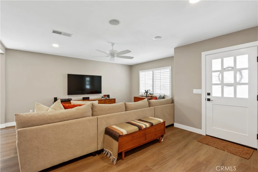 Beautiful 3 bedroom, 2 bath, 2 car garage, single family residence located in the wonderful city of Laguna Hills. It all starts as you walk in the front door, you will see the pride of home ownership. This beauty has been completely remodeled from top to bottom with New Luxury Vinyl throughout home, custom painting interior and exterior, all new base boards, new casings, dual pane windows, new toilets, shelf organizers, new blinds, brand new interior/exterior doors, ceiling fans, brand new kitchen with shaker cabinets, quarts counter tops, new undermount deep kitchen sink , back splash, stainless steel appliances, LED Ceiling lighting, large kitchen island and custom built garage cabinets and epoxy flooring in the garage. This model has a very bright and open floor plan with plenty of natural light. This property just has to many upgrades to mention. You must really see to really appreciate. The living/family room is very spacious with a cozy fireplace, 3 spacious bedrooms with a large master bedroom, brand new vanity and shower tub with upgraded backslash. Don't forget about the lovely back yard with a nice Built in BBQ and relaxing patio to enjoy those summer evenings with family and friends. You must bring your pickiest buyers. This property will not disappoint. Great location next to shopping centers, restaurants and shopping malls. Must see to really appreciate! HURRY THIS PROPERTY WONT LAST !
