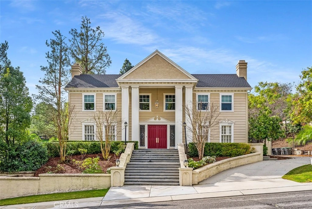 This stunning and highly remodeled residence, exuding timeless Colonial charm, spans an estimated 5,700 sq.ft. of luxurious living and entertaining space on over half an acre. The six-bedroom residence makes a striking first impression with a grand foyer highlighted by soaring ceilings and a sweeping staircase. The sophisticated living room features a beautifully updated fireplace and transitions effortlessly into the formal dining room, ideal for hosting. A stately library showcases custom built-in bookcases, a warm fireplace, and detailed crown molding, creating an inviting retreat. The chef-inspired kitchen has been thoughtfully remodeled with a large center island, premium stainless steel appliances, updated solid-surface and butcher block countertops, and a sunlit breakfast nook with views of the backyard. It opens seamlessly to the spacious family room with fireplace, offering an ideal setting for everyday living and casual gatherings. The recently refreshed primary suite is a true sanctuary, complete with an updated fireplace and a luxurious, spa-like primary bath designed for modern comfort. Step outside to spectacular entertainer's grounds, where the redesigned backyard pool now features an exciting slide, an entertainer's outdoor room with built-in BBQ, and a spacious new pool bathroom for ultimate convenience. A lush lawn area and side yard are enveloped by mature landscaping, providing exceptional privacy and serenity. Home has been repiped. This remarkable property blends classic elegance with thoughtful modern upgrades, creating the perfect retreat for sophisticated living and unforgettable entertaining. Nellie Gail Ranch delivers outstanding value with low HOA dues covering security, trail maintenance, and base membership to the Tennis & Swim Club. Enjoy a clubhouse with restaurant, pools, 25 miles of scenic trails, parks, and community events—all in a top-tier equestrian neighborhood with easy access to freeways, shopping, and beaches.