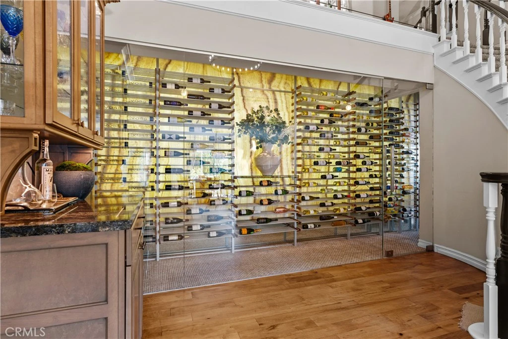 Beamed Ceilings, Built In Features, Breakfast Area, Ceiling Fans, Separate Formal Dining Room, Eat In Kitchen, Granite Counters, High Ceilings, Multiple Staircases, Open Floorplan, Stone Counters, Recessed Lighting, Bar, Attic, Entrance Foyer, Primary Suite, Wine Cellar, Walk In Closets