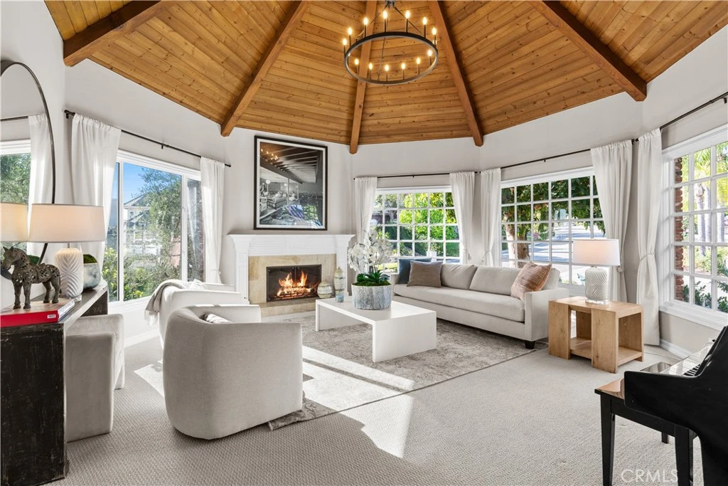 This Nellie Gail beauty has been thoughtfully upgraded for comfortable, family-style living and sits on one of the highest streets providing gorgeous views toward the coast. With each room designed to enjoy natural light and flow, this home also features: 5 beds, 5.5 baths, a light-filled primary suite with views and newly remodeled bath, enchanting home office with fireplace, inviting family room adjacent to upgraded gourmet kitchen, peaceful living room with fireplace, spacious bedrooms, a billiards room and much more! The backyard oasis includes a sparkling pool with waterfall, inviting spa and outdoor fireplace with gathering area adjacent to large built-in barbecue area. Beautifully landscaped, the property is also spectacular in the evening as the sun sets. This well cared for home with gated motor-court sits on on a highly desirable cul-de-sac, walking distance from the summer concert series and community events at Gallup Park and close to horse and walking trails - come see why Nellie Gail is one of the most enchanting communities in South County. This exceptional, turn-key property welcomes you to the neighborhood.