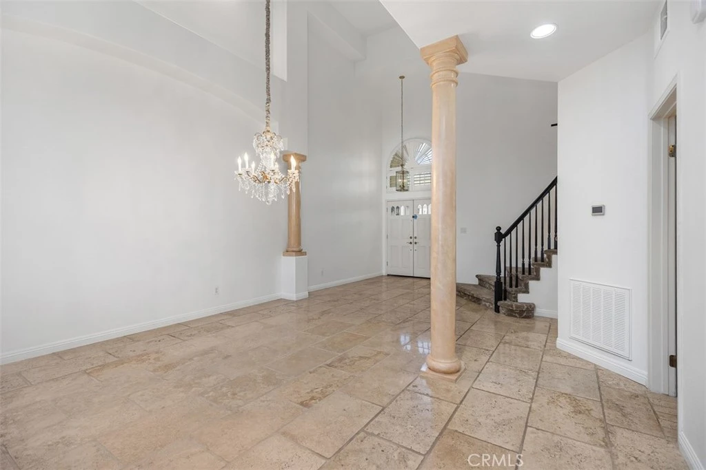 This beautiful view townhome has it all. The panoramic view encompasses the mountains, hills, city lights, and is only steps away from a large park inside Moulton Ranch. This 3-bedroom 2.5 bath home has 2549 square feet and is located within the gated community of Bella Vista with its own pool and spa. The high ceiling architecture and a skylight brings in tons of light, and the floorplan is open and free flowing. Travertine flooring, granite counters, quartz bathroom counters, and dual sinks in master and guest baths are some of the upgrades. Plantation shutters, ceiling fans, and recessed lights throughout the home plus fireplaces in living room, family room, and master bedroom. The rear patio has a cover for shade, stone pavers, and awesome views. The master bedroom has a fireplace, views, and a mirrored walk-in closet in the bath area with a separate tub and shower. The kitchen has travertine flooring, granite counters, and leads to an inside laundry with gas & 220, then into the 3-car garage with tons of built-in cabinets. This property has it all and is easy to show.