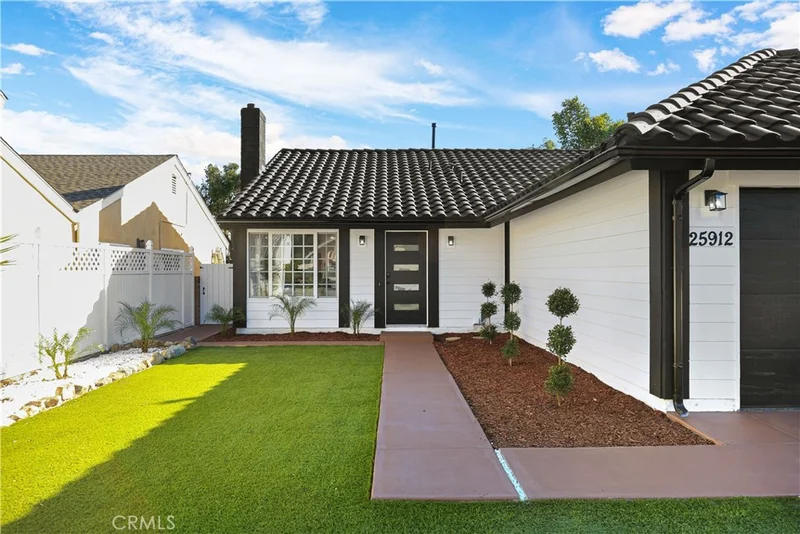 Back on the market as of 3/12/2026. Buyer at last minuet could not obtain financing. welcome to this beautiful & completely remodeled 3-bedroom, 2-bath single-family home on a quiet cul-de-sac in the highly desired Castle Hill Community of Laguna Hills. Walk to parks, shopping, and schools. This light, open-plan home features a recently installed, fully paid-for solar system, Upgraded HVAC system with AC condenser & furnace, and all new appliances. New Doors throughout, New fixtures & recessed LED lighting. All switches and outlets are new. Custom tile flooring is also new throughout. Fresh interior and exterior paint. All new cabinets in the kitchen and bathroom with quartz countertops. New refrigerator and gas range. Whole house re-plumbed with PEX re-pipe. New electric chimney/Fireplace Upgrade with 5 x 10 ft black tile. Garage upgraded with drywall ceiling and epoxy floor with a new garage Door and opener. All new exterior lights, new rain gutters, new pavers in the back patio, New landscape with new plants & synthetic grass yards both front and back. Sidewalk and driveway upgraded with new desert coffee stain. This house is turn-key. You will think you're in a model home. In a wonderful and quiet Family neighborhood.