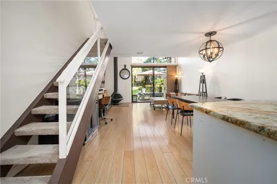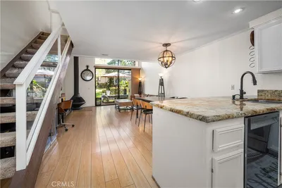 Charming 1-bedroom, 1.5-bath townhome located in the desirable Quail Creek community in Laguna Hills. Enjoy a peaceful, nature-filled setting with a private patio overlooking a flowing creek, complete with ducks and tranquil surroundings.This home features laminate flooring, newer carpet, fresh interior paint, and updated countertops in both the kitchen and bathrooms. The spacious primary bedroom is located upstairs and includes a walk-in closet for ample storage. The kitchen opens seamlessly to the living area, highlighted by a cozy fireplace—perfect for relaxing or entertaining.Conveniently located near shopping, dining, walking trails, and freeway access. The property includes one assigned covered parking space.Residents of Quail Creek enjoy access to a variety of HOA amenities, including a pool, spa, tennis courts, sauna, and EV charging stations.An ideal blend of comfort, convenience, and serene living.