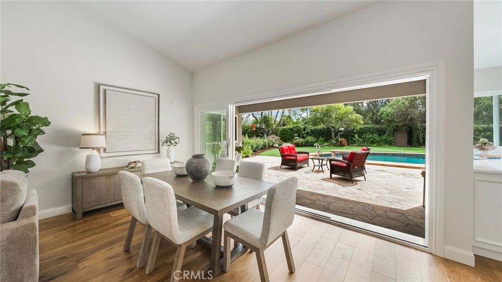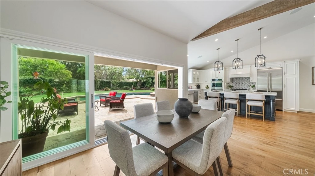 Beautifully remodeled and perfectly appointed this three-bedroom single-story home is nestled on nearly half an acre in the prestigious Nellie Gail Ranch community. This comprehensive rebuild spared no detail. Home offers the peace of mind of new construction wrapped in warmth and character. Meticulously maintained rose gardens frame the property upon arrival, setting a tone of timeless elegance that carries throughout. Inside, soaring wood-beamed ceilings crown an open floor plan where a gourmet kitchen flows effortlessly into the living and dining areas — ideal for both everyday living and entertaining. All bedrooms are generously sized, with the primary suite serving as a true sanctuary, featuring a luxurious bath with soaking tub and serene views of the backyard. Sweeping multi-slide doors dissolve the boundary between indoors and out, revealing a resort-worthy backyard complete with a sparkling pool, relaxing hot tub, fire pit, and lush rose gardens on all sides — the quintessential Southern California lifestyle. A three-car garage and coveted equestrian zoning add rare functionality to this already exceptional property. All of this just a short stroll from the Nellie Gail Ranch clubhouse, where residents enjoy fine dining, tennis, pickleball, and swimming — community living at its very finest.