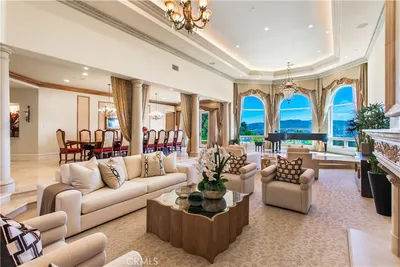 Located within the prestigious guard gated enclave of Bear Brand Ranch, 12 Morning Dove is a magnificent ocean view estate that epitomizes Southern California coastal, luxury living. Set on approximately 1.41 acres, this extraordinary custom residence offers over 13,500 square feet of refined living space with 10 bedrooms and 11.5 bathrooms, designed to provide both grand-scale entertaining and ultimate privacy. A dramatic entry welcomes guests into a soaring foyer highlighted by exquisite custom woodwork and architectural detailing throughout. Expansive living spaces are filled with natural light and flow effortlessly from formal living and dining areas to relaxed family gathering spaces anchored by elegant fireplaces. The newly remodeled chef’s kitchen is thoughtfully designed with premium appliances (Gaggenau range) and custom cabinetry, and an oversized island, creating a perfect setting for both intimate meals and large-scale entertaining. Nearby formal and informal dining spaces provide seamless functionality for hosting. A custom built formal dining table seats up to 20 for the ultimate family dinners. The primary suite serves as a large expansive private sanctuary, featuring a luxurious spa-inspired marble bathroom with large walk in closet, one of two in the suite. Also a second office and a private balcony overlooking the estate’s beautifully landscaped grounds and ocean view. Many unique features within this elegant home include 2 large ensuite bedrooms that sit off a large study area complete with three built in desks and a large custom square conference table. Downstairs is the grand game room complete with a 9 seat movie theater and an authentic Japanese Tea room with custom tatami floors and Shoji sliding doors. Designed for resort-style living, the grounds feature: A private regulation tennis court/Pickle ball court, lit for evening play and newly resurfaced. Resort-style pool and spa. Multiple outdoor entertaining areas. One bedroom/One bath casita ideal for guests. Additional amenities include 2 garages including a 4 car garage for the car enthusiast, 290 bottle wine cellar, home gym/mirrored dance studio with full bath & ladies nail bar. Extensive patios overlooking the tennis court/grounds include a large outdoor barbecue area with outdoor fireplace. Located just minutes from famous resorts and beaches, as well as premier dining and shopping, elevate the estate to a truly "world class" residence.