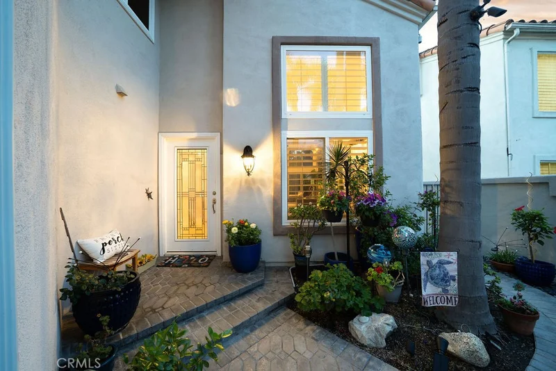 Located in the highly sought-after coastal community of Marina Hills, this beautifully remodeled home offers warmth, elegance, and effortless resort-style living. Thoughtfully upgraded, it blends sophisticated finishes with comfortable everyday living—plus a private backyard retreat that truly sets it apart. Soaring ceilings and dramatic two-story windows flood the home with natural light, creating an immediate sense of openness. The expanded open-concept kitchen flows seamlessly into the living area, forming a stunning great-room design ideal for relaxing and entertaining. Marble flooring with black granite inlays adds timeless refinement. The gourmet kitchen features a built-in KitchenAid refrigerator, Wolf range, stainless steel dishwasher, custom Schuler cabinetry, and a sleek stainless steel backsplash. Imported Blue Bahia granite enhances the kitchen and baths, while a matching custom entertainment center anchors the living space. Built-in speakers with a Sonos sound system elevate gatherings, and a remote-controlled gas fireplace with included large-screen TV creates the perfect setting for cozy evenings. Upstairs, a custom stained-glass window and skylight add architectural charm. The primary suite offers vaulted ceilings, greenery views, and coastal breezes. Its spa-inspired bath includes a walk-in closet with built-ins, dual sinks, custom cabinetry, an Ove smart toilet, and a multi-spray shower with frameless glass enclosure. Bathrooms feature granite counters, stone floors and wainscoting, stainless-steel sinks, and Hansgrohe fixtures, while the secondary bath includes a spa tub. Additional upgrades include double-pane tinted windows, whole-house water filtration, complete re-plumbing, upgraded electrical, a tankless water heater, modern shades, and a Nest thermostat. Two secondary bedrooms provide flexibility, including one with custom office built-ins. The two-car garage offers storage cabinetry and soundproofed adjoining walls. An energy-efficient Asko washer and dryer are included. Outside, the private backyard enjoys southern exposure and is designed for relaxation and entertaining, with flagstone hardscape, a built-in gazebo, gas fireplace, artificial turf, mature trees, and a fountain with three cascading waterfalls. An outdoor shower completes this serene escape.