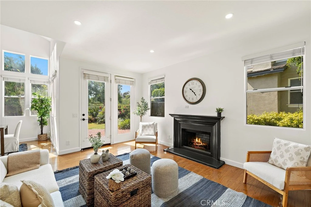 Live just minutes from the sand and surf in this beautifully updated home in the sought-after, gated Cameray Pointe community of Laguna Niguel — offering privacy, security, and resort-style amenities including a sparkling pool and spa. As you enter, warm natural light floods the space through tall windows and soaring ceilings, highlighting the freshly buffed hardwood floors and crisp new paint throughout. A statement chandelier adds elegance to the formal dining room, while the inviting living area is anchored by a cozy fireplace and opens to your own quaint, landscaped patio and yard — a lush and private space ideal for morning coffee, weekend barbecues, or unwinding after a beach day. The kitchen has been completely refreshed with white cabinetry, updated hardware, stainless steel appliances, custom subway tile backsplash, and designer tile flooring, along with its own cheerful breakfast nook under a stylish chandelier. On the main floor, you’ll find a bedroom with mirrored closet doors and direct patio access, plus a full bath — perfect for guests, a home office, or multi-generational living. Upstairs, the spacious primary suite offers a spa-inspired retreat with a dramatic navy double vanity, soaking tub, glass shower, and dual sinks, while an additional guest bedroom and full bath complete the upper level. Residents of Cameray Pointe enjoy a gated setting with a community pool & spa, and unbeatable access to all that makes South Orange County so desirable — from nearby Salt Creek Beach, Strands Beach, and Dana Point Harbor, to Monarch Beach Resort & Golf Links and the scenic trails and lake at Laguna Niguel Regional Park. With grocery stores, dining options, and services just around the corner, and easy access to PCH and the 5, you’re perfectly positioned to enjoy the coastal lifestyle.