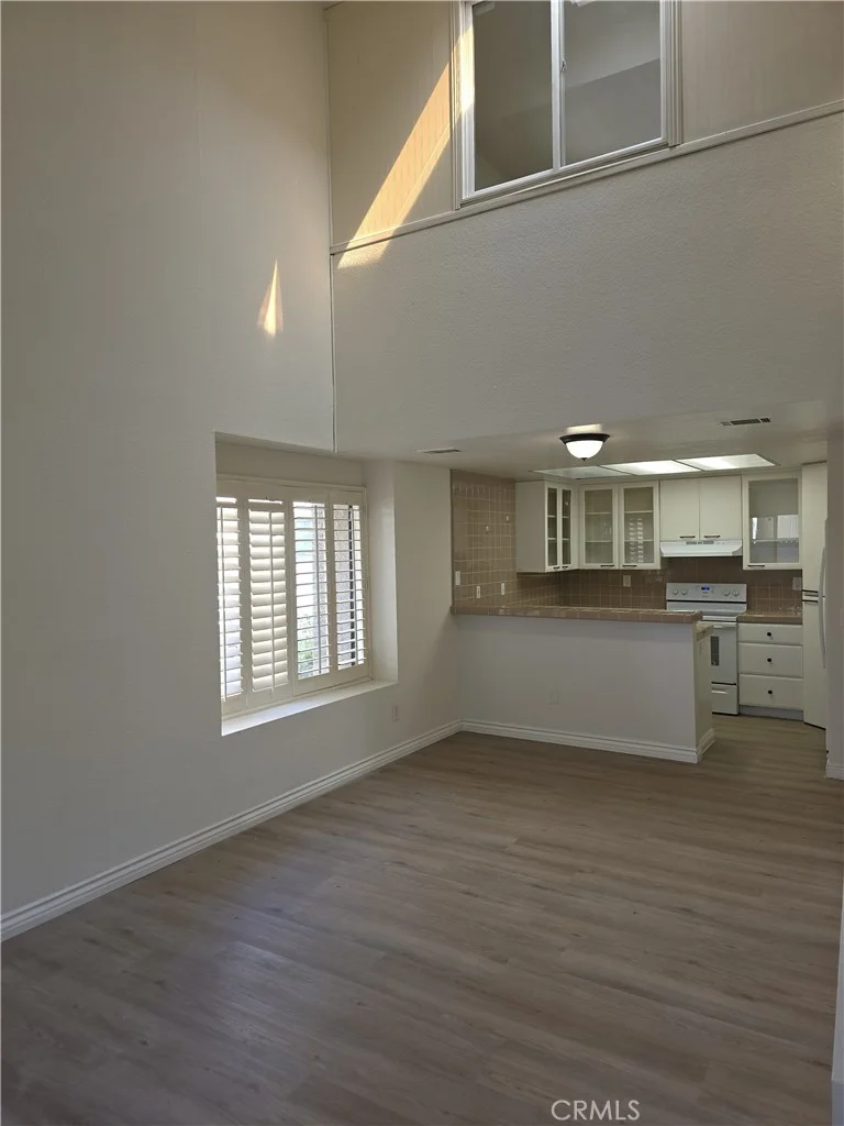 No one above or below!, two level, two bathrooms, plus a den with fireplace, could be used as a third bedroom...well lighted and bright with a main floor bedroom and a sky light. New wood flooring in the living room and downstairs bedroom. New carpets in upstairs bedroom and stairs. View of garden and trees from all bedrooms. Nice size patio for BBQ. Unit comes with one carport; the permit to park the second car on the property must be obtained by tenant and overnight guest parking allowed by safe listing. Full size washer and dryer and Fridge. Association pools and spas. Close to neighborhood shopping, freeways, medical facilities.
