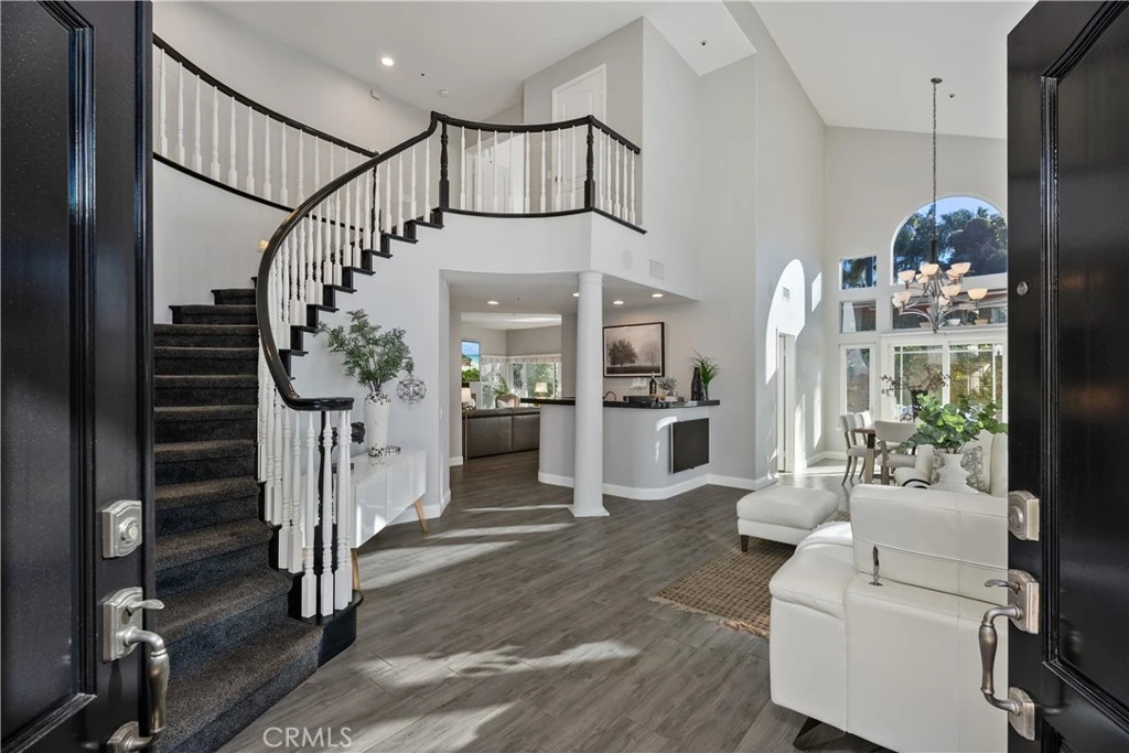 From the resort-style pool to the ultimate backyard experience 21 Bernay is designed for unforgettable gatherings and everyday escapes! This thoughtfully remodeled home sits on a rare oversized, end of cul de sac lot and features a resort-style pool designed for elevated living and entertaining, in the highly sought-after Marina Hills community! Throughout the home you’ll find MILGARD WINDOWS, PEX REPIPE, OWNED SOLAR, DUAL NEWER HVAC/WATER FILTRATION systems, and no carpet except the staircase plus more exceptional details. Set on a private expansive 13,500 sq ft lot, this updated 4-bedroom home plus bonus room offers 3.5 beautifully updated bathrooms and adds an exceptional blend of luxury, comfort, and meticulous design throughout. Inside, the chef-inspired kitchen is a showstopper with elevated custom cabinetry, extended island with seating and extra storage/sink with disposal, under-cabinet lighting, an appliance garage, professional SS Dacor appliances with dual ovens, and stunning Calacatta quartz countertops—details that elevate both form and function. A unique bar thoughtfully positioned between the living and family rooms makes entertaining effortless. The reimagined primary suite boasts soaring ceilings, a luxurious enlarged shower, added custom vanity, elegant chandelier, and a spacious walk-in closet with custom California Closets built ins. A highly desirable downstairs bedroom with remodeled ensuite provides ideal accommodation for guests or multigenerational living. Designed for both everyday living and unforgettable entertainment, the backyard is a true resort-style oasis featuring a saltwater sport pool, a striking stone fireplace, stone hardscape and spa, turf, and Al fresco dining under one of the two electronic awnings. A huge BBQ bar with burners, drawers, and refrigerator, all that centers the outdoor living space, creating the perfect hub for hosting family and friends. Residents of Marina Hills enjoy award-winning amenities, including a junior Olympic pool, tennis/pickleball courts, clubhouse, BBQ areas, parks, bocce ball, and more—all just minutes from Dana Point Harbor/Laguna Beach, coastal trails for biking/hiking including Salt Creek Trail that take you to beaches, nearby dining and shopping. This is a rare opportunity to own a remarkable home on one of Marina Hills’ most coveted lots.