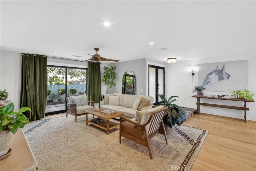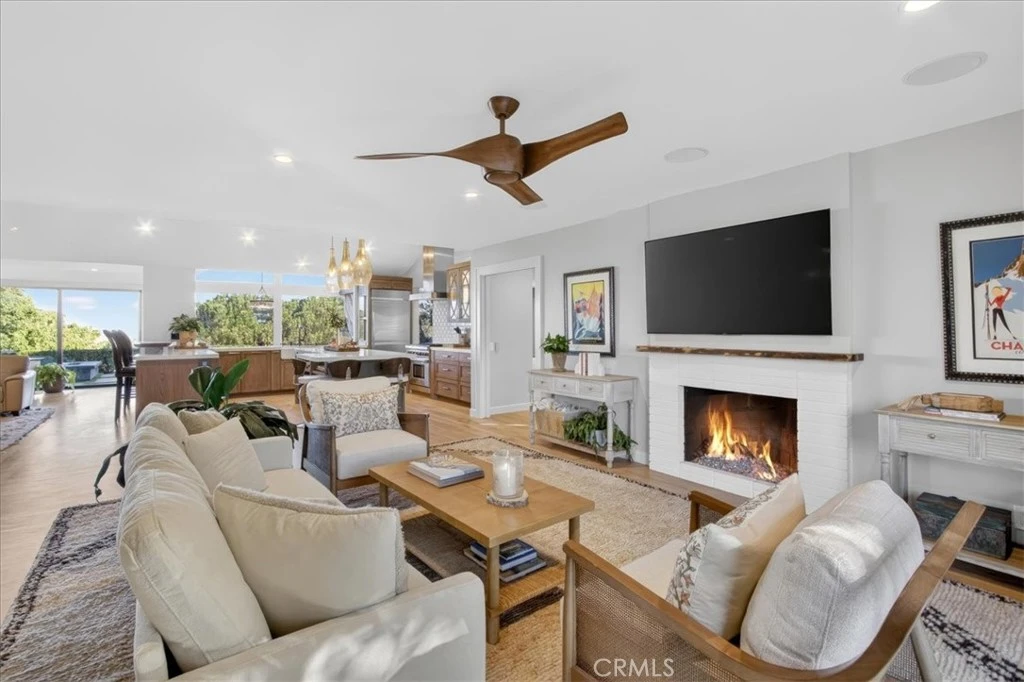 Perched above the rolling hills of Laguna Niguel, this single-story masterpiece is a true passion project- crafted with intention, character, and an artistry rarely found in today's market. Every room reflects thoughtful design, custom finishes, and a harmony with the surrounding landscape that makes the home feel both inspired and inviting. A perfect blend of open-concept flow and beautifully defined spaces. The home offers 3 bedrooms, 3 baths, game area, family room, lounge area, and a versatile flex room that is ideal as an office, gym or library. White oak flooring grounds the living spaces with warmth, while designer wallpapers, live-edge shelving, and granite accents add curated richness and visual interest. At the center of everyday living is the chef's kitchen, outfitted with a Wolf range, a large refrigerator, custom cabinetry, a walk-in pantry, drawer-style dishwasher and microwave, and a built-in wine fridge. Just off the lounge sits a custom-finished dry bar, with its own granite details. Each of the home's three bedrooms includes a custom-designed closet, offering stylish and efficient storage. One of the two guest bedrooms enjoys its own en-suite bath with a soaking tub. The primary suite is a peaceful retreat, featuring french doors that open to the garden deck made with Ipe wood, a spa inspired bath with a walk-in shower and dual sinks, and an extraordinary walk-in closet with ample room for two. Seamless indoor-outdoor living comes through a Jeld-Wen multi-slide door, which opens the back of the home to panoramic views of the Laguna Niguel valley and the Saddleback Mountains, plus a Fleetwood disappearing door to the front garden. Whether taking in the soft morning light or the dramatic sunset color, the backdrop is unforgettable. The outdoor spaces are thoughtfully created for relaxation and entertainment: a built-in BBQ that includes a smoker, a fire feature for cozy gatherings, beautiful gardens, tranquil fountain, fruit trees, and an auto-roof pergola that provides shade without obstructing the view. Privacy and serenity define the backyard experience. Additional enhancements include a new roof (fall 2025), water softener, tankless water heater, abundant garage storage, and a well equipped laundry room. Reimagined with heart and refined with exceptional detail, this property is more than a home--it's a signature expression of California living, where custom craftsmanship meets modern luxury and sweeping natural beauty.