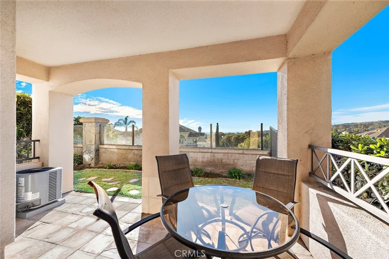 OFFERED FULLY FURNISHED and thoughtfully stocked, simply arrive and settle in. Positioned in one of the most desirable locations within the community, this PRIVATE SINGLE-LEVEL END-UNIT captures OCEAN, CATALINA ISLAND, AND SUNSET VIEWS. Natural light fills the open-concept living spaces, while the wraparound yard and covered BBQ patio creates a fantastic indoor-outdoor setting. Remodeled in 2018, the home features a custom kitchen and baths, stack stone fireplace, wood-style flooring, built-ins, and modern appliances. The spacious primary suite offers dual vanities, walk-in shower, and generous walk-in closet. The secondary bath also includes dual vanities, ideal for guests. There are no interior steps and no steps from the parking lot to the front door — only two steps from the garage into inside laundry room just off the kitchen. Comfortable, private, and beautifully positioned — an ideal coastal retreat with an easy, open feel.