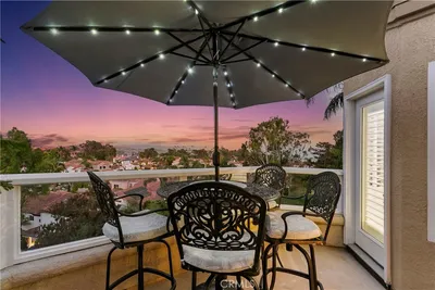 Photos coming soon! Sweeping ocean and Catalina Island views set the tone for this beautifully updated contemporary home, offering 2,721 square feet in the exclusive gated community of Laguna Sur. Perfectly positioned to capture the scenery, this residence features dual balconies off the main living area and primary suite—creating seamless indoor-outdoor living. With no neighboring home to one side, enjoy enhanced privacy alongside expansive south-facing vistas, along with access to the community heated pools and pickleball courts for an active lifestyle. Inside, soaring ceilings and refined finishes define the thoughtfully designed interior. The recently remodeled kitchen has been opened up to enhance ocean views, creating a bright, airy flow into the main living spaces. A newly redesigned bar complements the kitchen, offering a cohesive and stylish setting for entertaining. The formal dining room, spacious living room with wet bar, and separate den provide versatile spaces for both relaxing and hosting. New laminate flooring throughout adds a fresh, modern touch. The primary suite is a true private retreat, featuring its own balcony with breathtaking views, a walk-in closet, comfortable sitting area, and a striking double-sided fireplace.Additional upgrades include recently updated bathrooms and enhanced lighting, highlighted by two contemporary crystal chandeliers. Residents of Laguna Sur enjoy resort-style amenities, including pools, spas, tennis, and pickleball courts—all just minutes from pristine beaches, renowned resorts, and scenic coastal trails.
